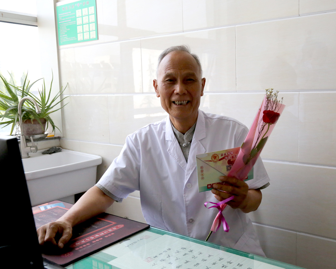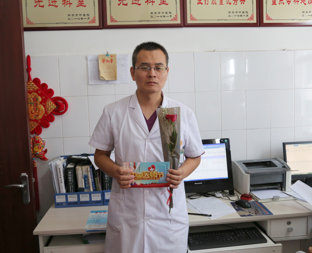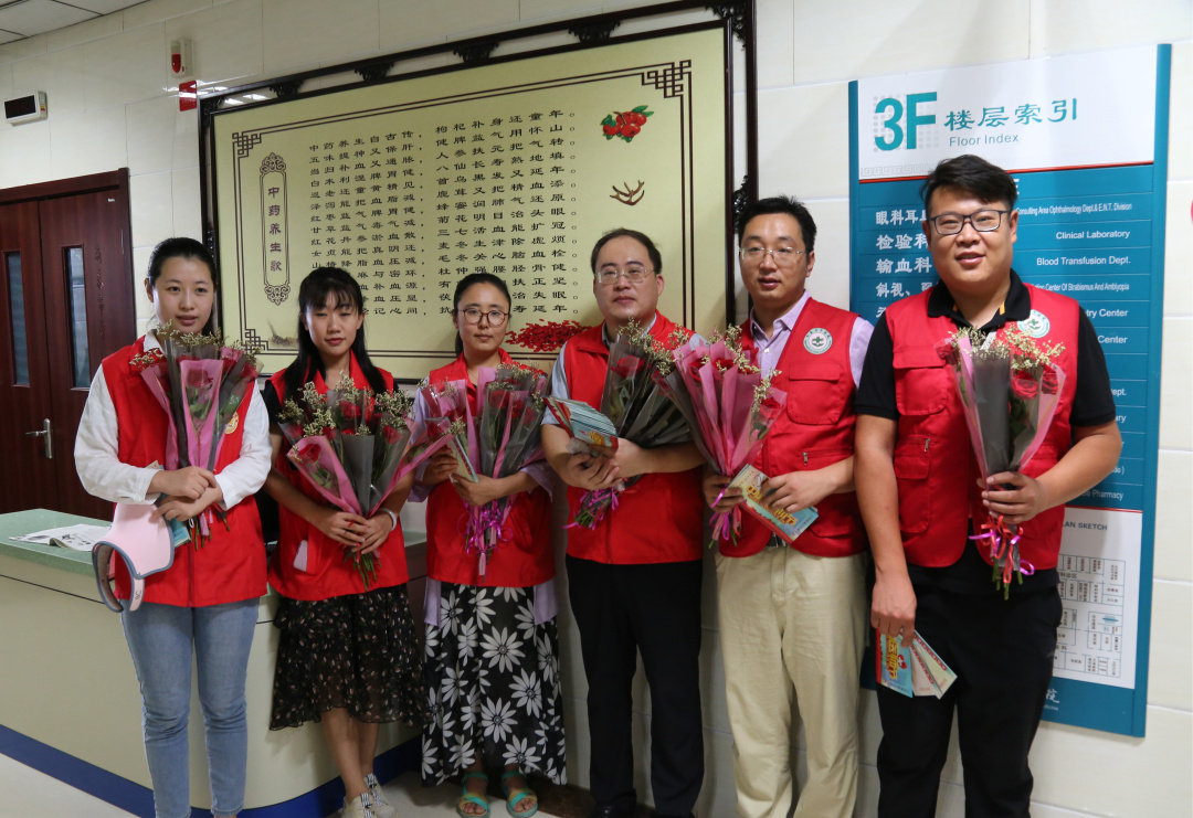 志愿者们到门诊和病房为值班医师送上一束鲜花和一份贺卡,表达对医师们的衷心感谢和美好祝愿!