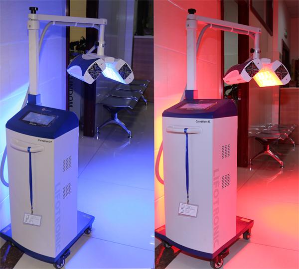 普门红蓝光光治疗仪采用高纯度、高功率密度的640nm红光、460nm蓝光对皮肤进行照射,能改变细胞结构,杀死细菌,为新生细胞提供一个适合的环境,增强新胶原质弹性蛋白和胶原蛋白的生成,促进细胞生长;能修复炎性痤疮老化肌肤、缓解日晒灼伤皮肤,而不伤害到皮肤,能美白皮肤、促进皮肤弹性。