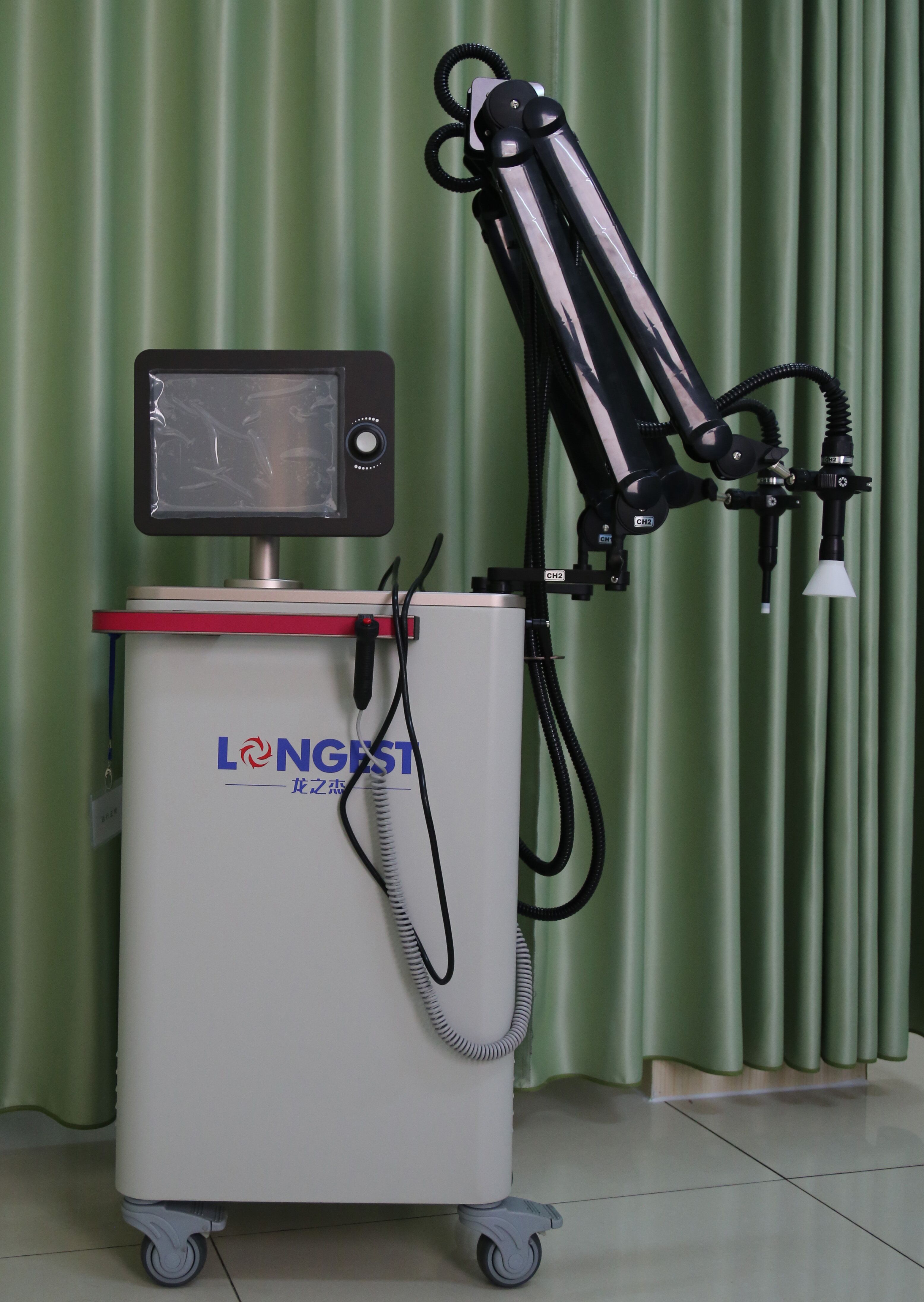 红外偏振光治疗仪(又称超激光疼痛治疗仪)是将国际最新光电技术与西医解剖学、神经学以及中医经络学针灸原理结合在一起,研制出的一种以治疗疼痛和骨伤为主的高科技绿色治疗新产品。这种“光针”通过照射神经根、神经干、神经节、痛点和穴位,可以产生以下作用: