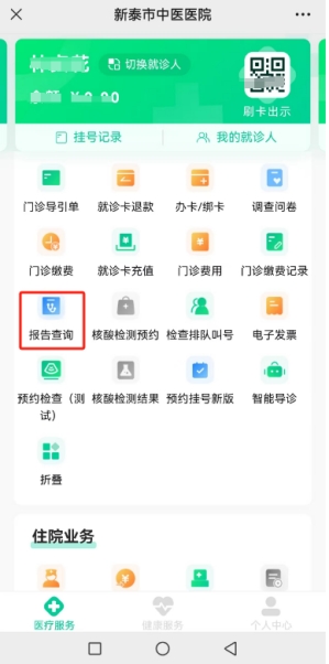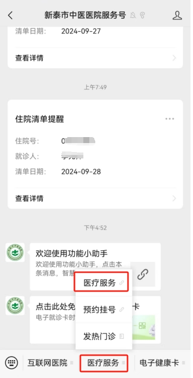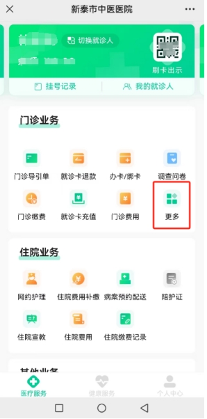 2、关注“新泰市中医医院服务号”后选择医疗服务。