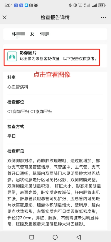 4、点击报告查询后找到需要查看的影像报告。