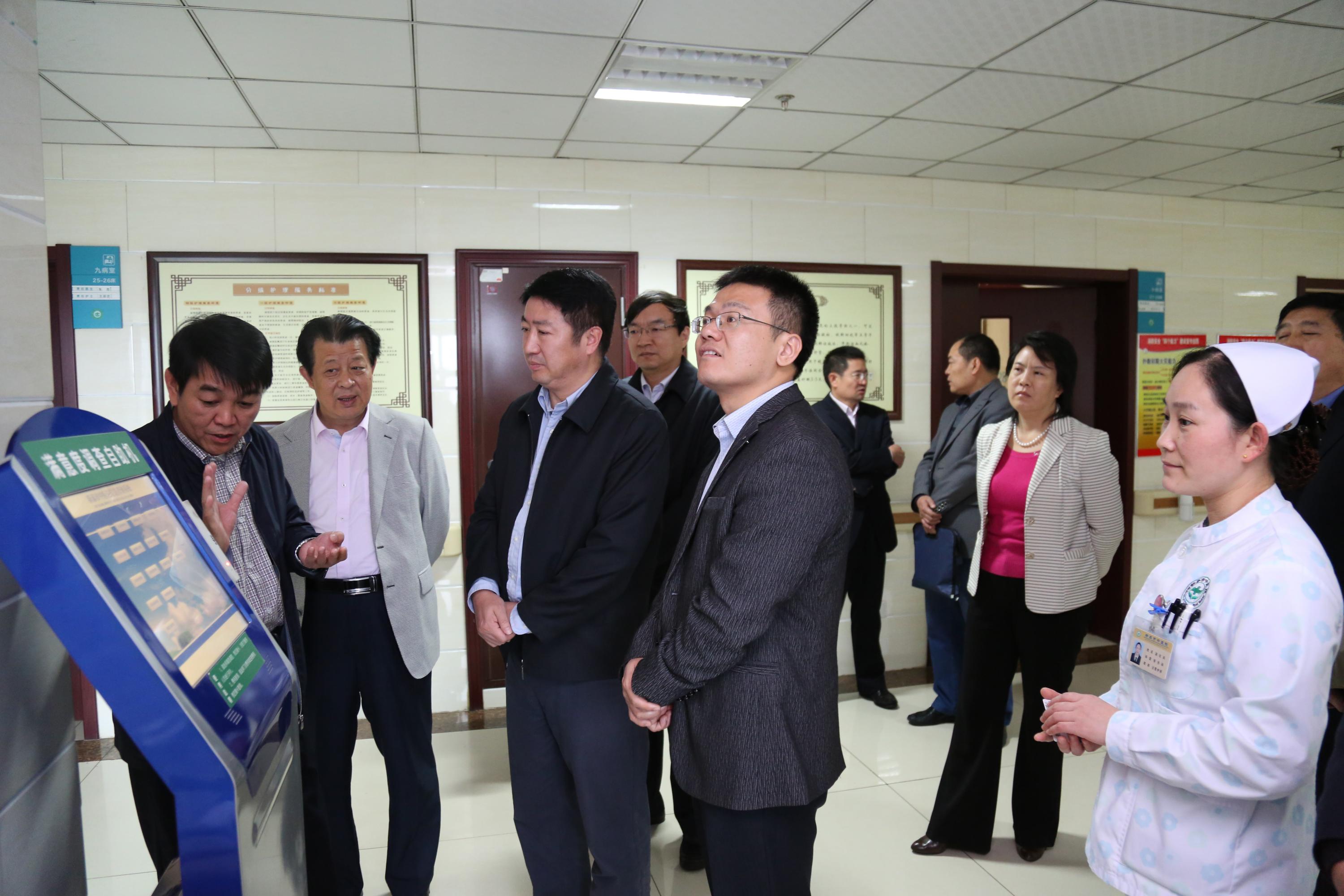 调研期间,陆建伟等人边看现场边听取我院负责人谭庆坤汇报了医院近年来的发展和医改情况汇报,对我院的发展和医改工作表示肯定。