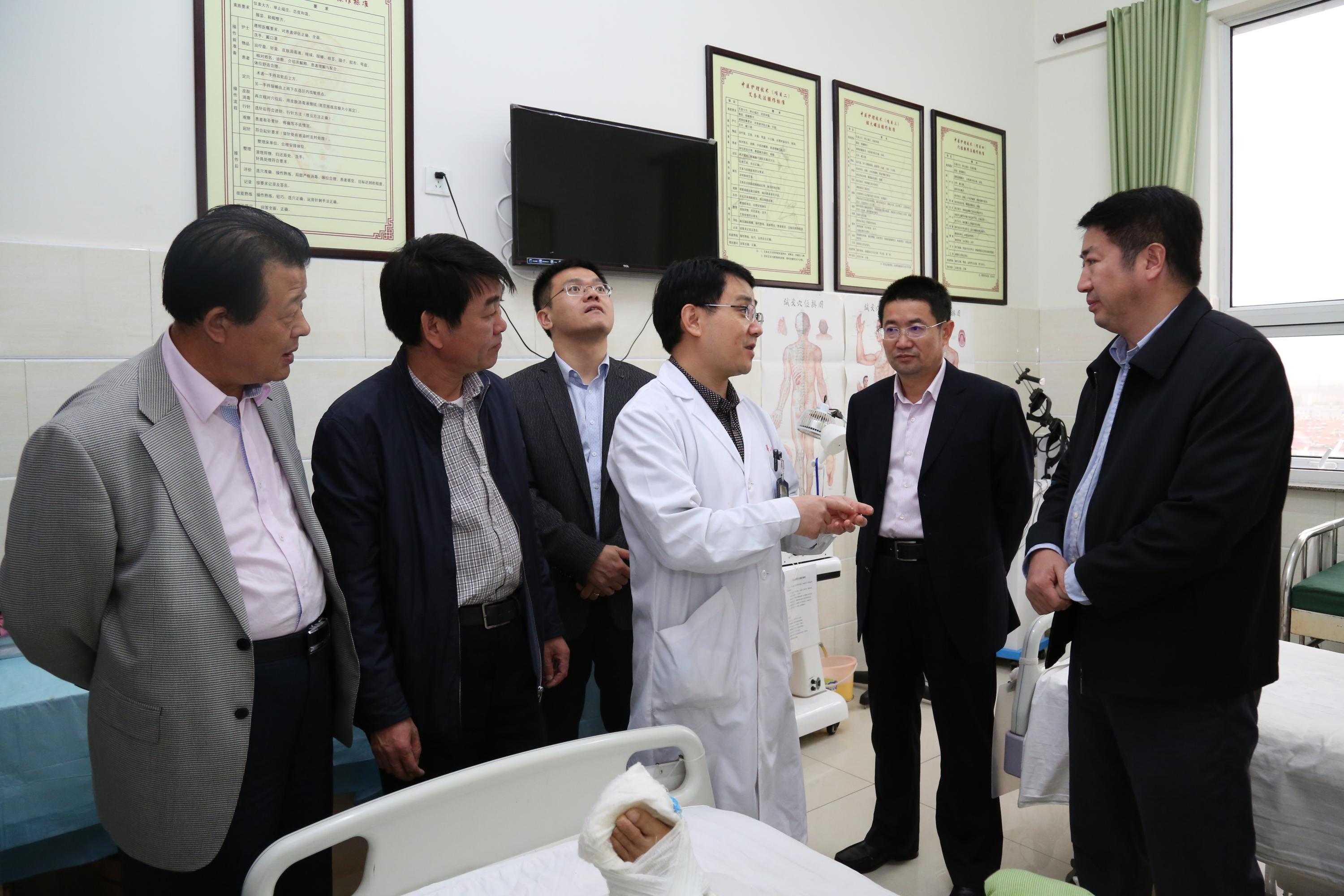 2014年10月30日,国家中医药管理局医政司副司长陆建伟、医政司综合处副处长严华国来我院调研医改工作,省中医药管理局副局长刘绍绪、泰安市卫生局副局长姬生勤、我市市政府副市长侯丽、市卫生局局长郭信波等一起参加调研活动。