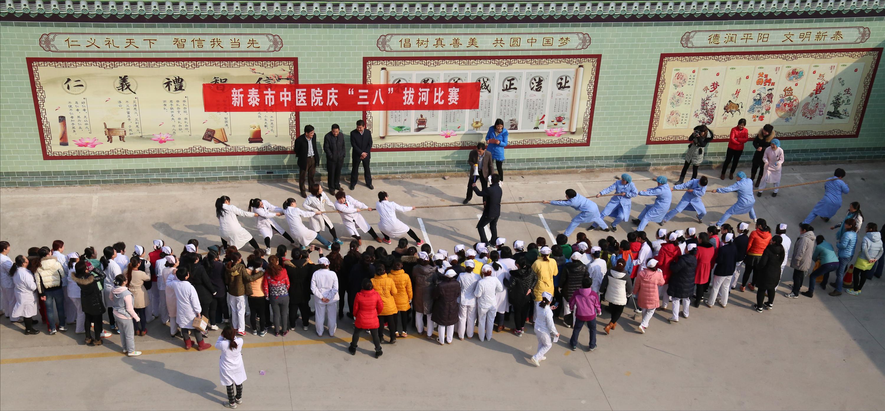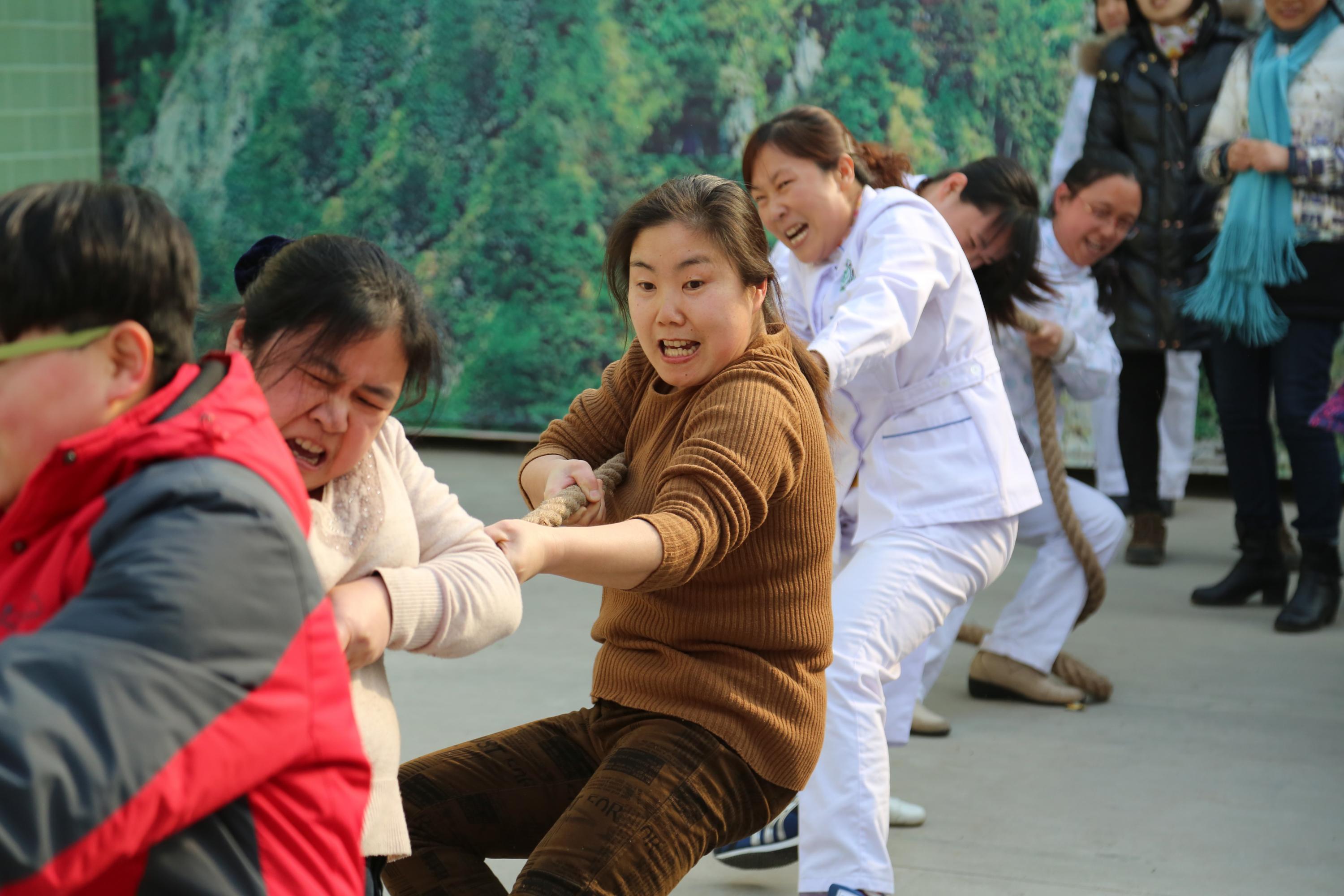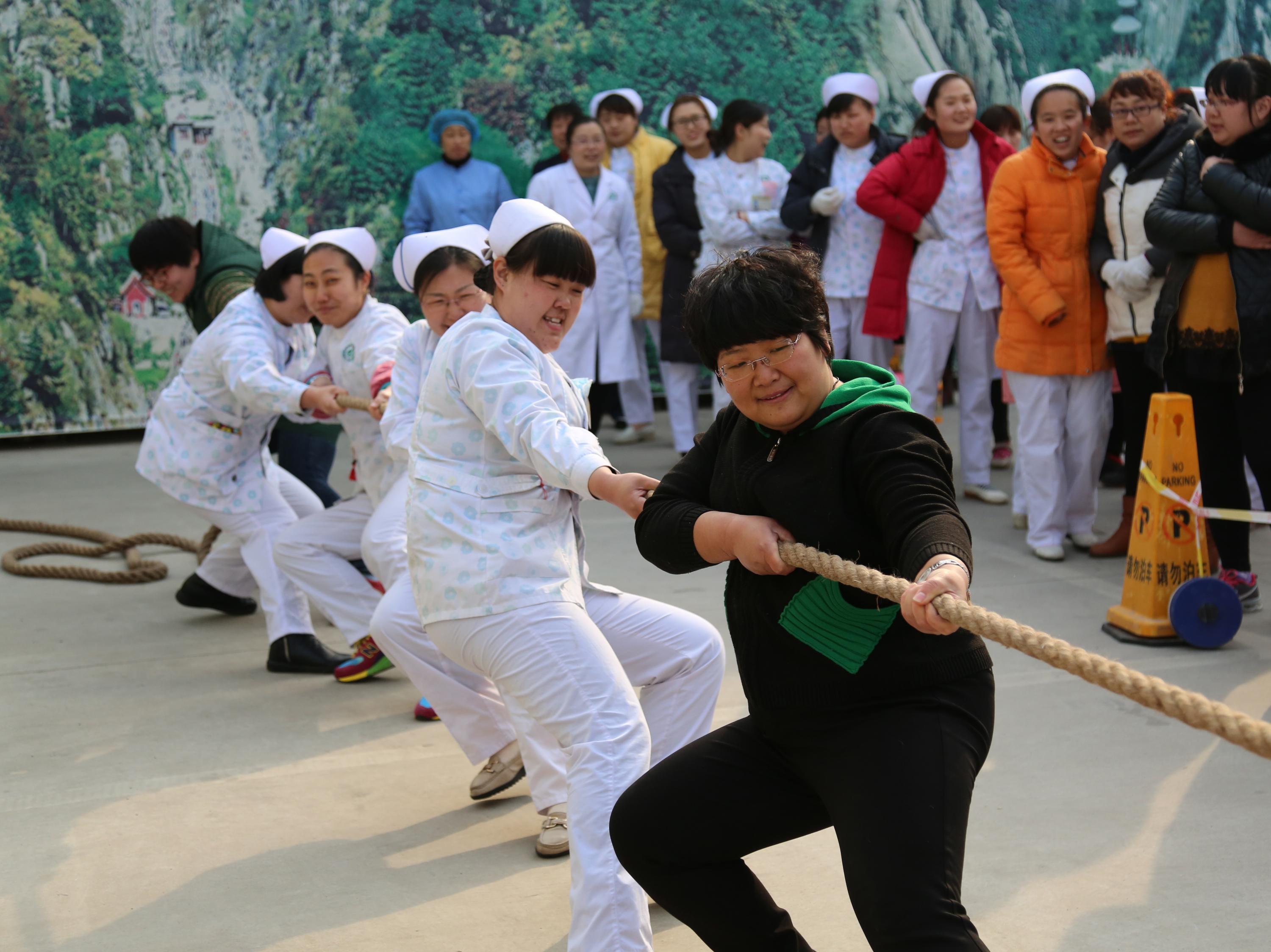 为庆祝“三八”国际劳动妇女节,培养女职工的团队合作意识,增强医院凝聚力,3月6日上午,我院在广场上举行了庆“三八”女职工拔河比赛。
