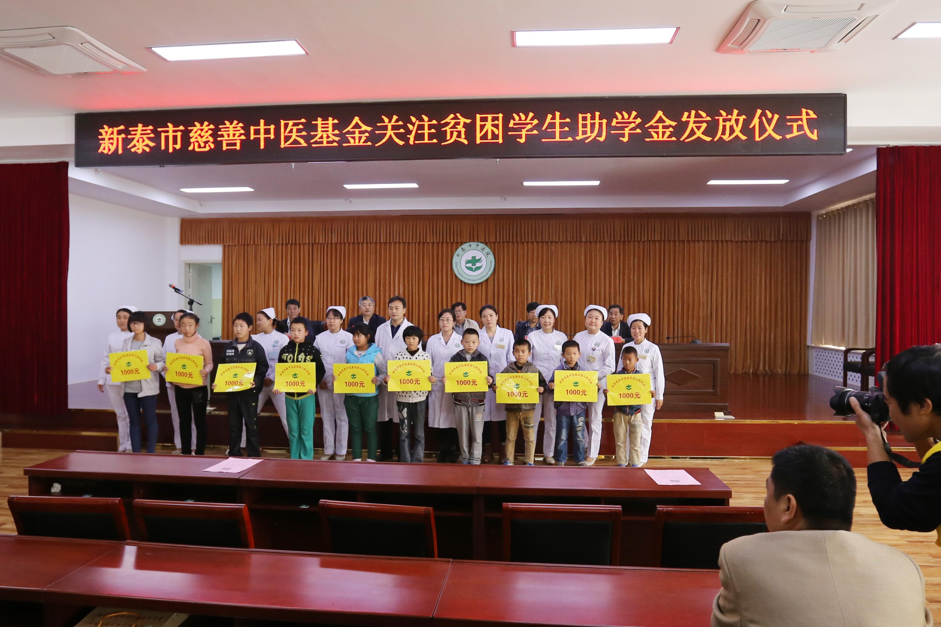 10月24日,新泰慈善中医基金关注贫困学生助学金发放仪式在市中医院1号会议室举行。市委常委、市委宣传部部长戴先锋、市教育局局长赵连军、市卫生局局长郭信波、市民政局副局长马光举、我院党总支书记谭庆坤出席发放仪式。仪式由市卫生局局长郭信波主持。