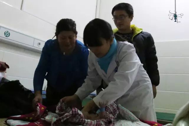 晚上9点25分,产科医师在为当天晚上6点多出生的婴儿检查。
