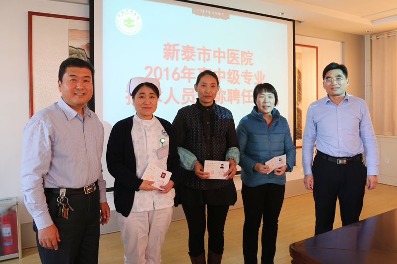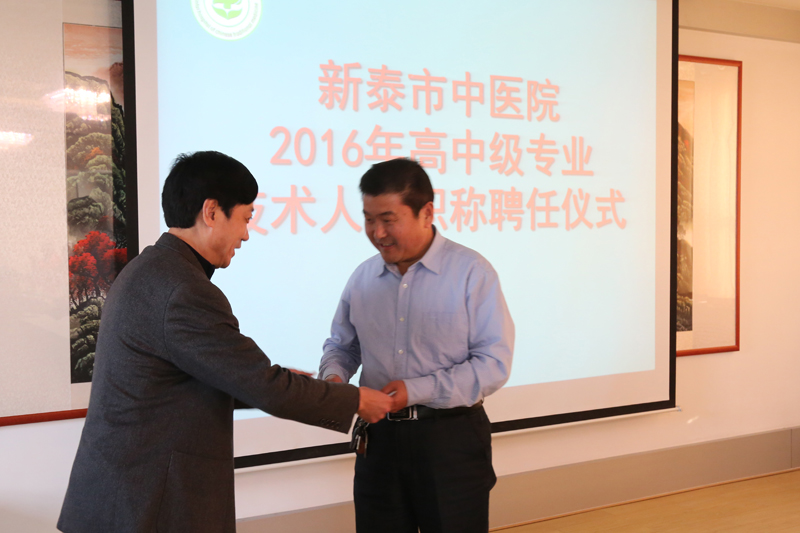 闫家平指出,经过我们的积极努力和协调争取,2016年我院有1人被聘为正高级职称,3人被聘为副高级职称,10人被聘为中级职称。这不仅仅是对大家工作的认可,也不仅仅是工资待遇的提升,更是今后工作的新开端。希望大家:一是进一步增强主人翁意识。爱医院、爱科室、爱同事、爱病人。医院是个大家庭,要继续为科室着想,为病人着想,当好主人翁,唱好主人戏,热爱岗位。要有事业心、进取心,时刻把病人放在心上,尽心尽力为病人服务;二是进一步加强学习。现在是信息时代,医学科技日新月异,大家要坚持学业务知识,学法律法规,学会沟通做人,把学习作为美德;三是进一步做好本职工作。要讲大局、讲团结、讲创新、讲奉献,维护医院和科室核心利益,人与人之间、科室之间要协调沟通配合好,要不断推进业务创新、技术创新,为个人的成长成才成熟做出更大的努力,为医院发展做出更大的贡献。(党办 展光保)