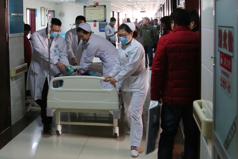 图5:患者被迅速送往病房,护士继续做胸部按压