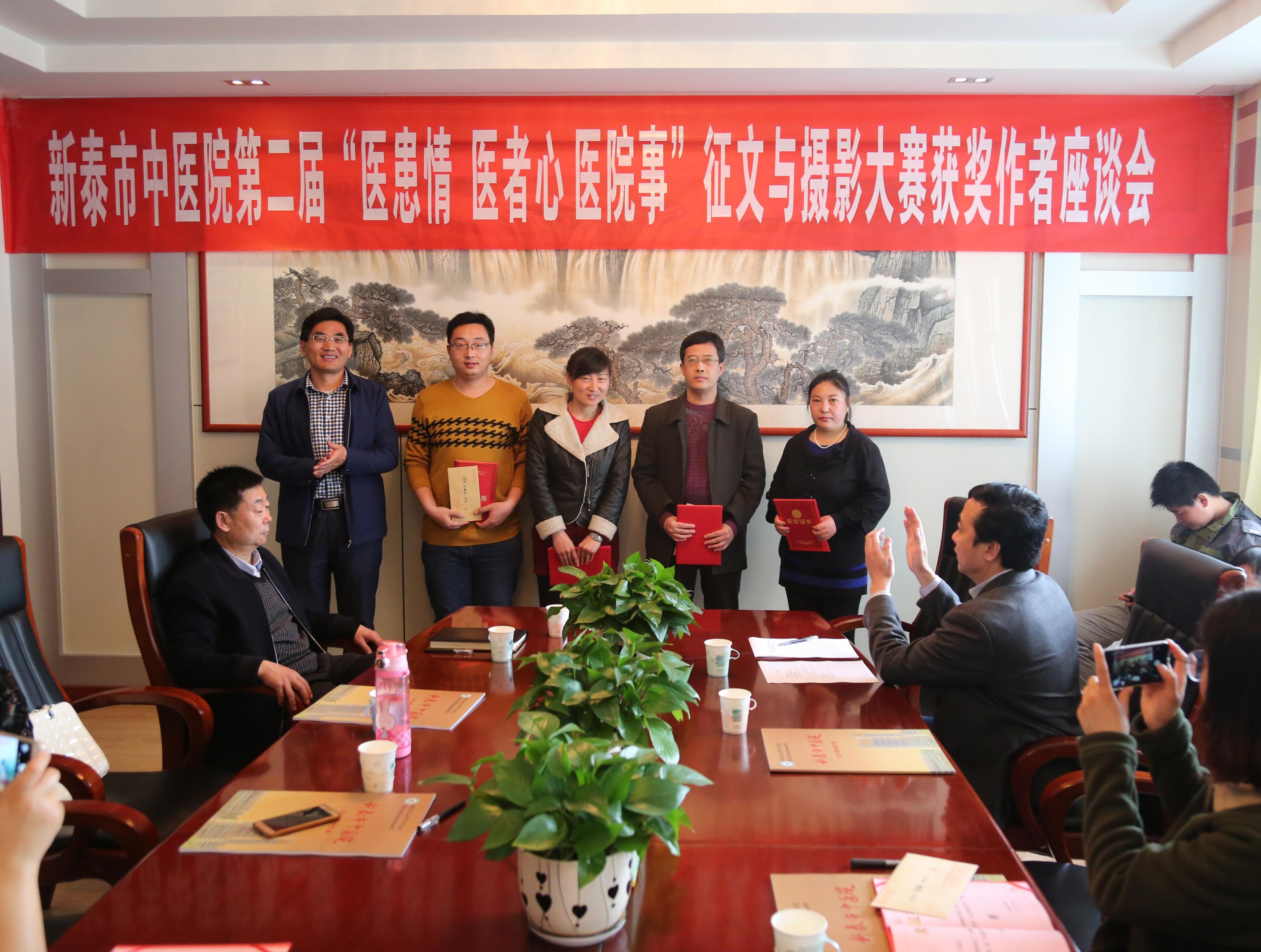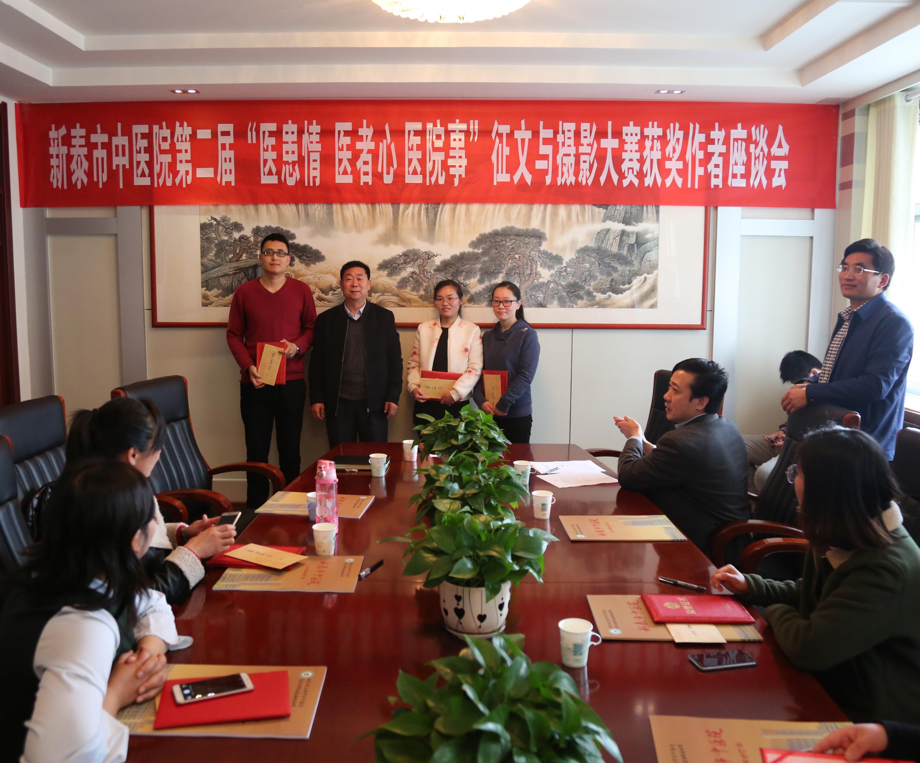 4月8日,我院召开第二届“医患情 医者心 医院事”征文与摄影大赛颁奖座谈会,院长闫家平、党委副书记王超、副院长吴修才、部分获奖作者、医院部分科室负责人参加。