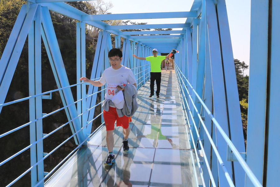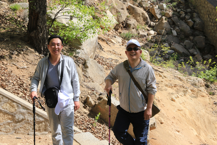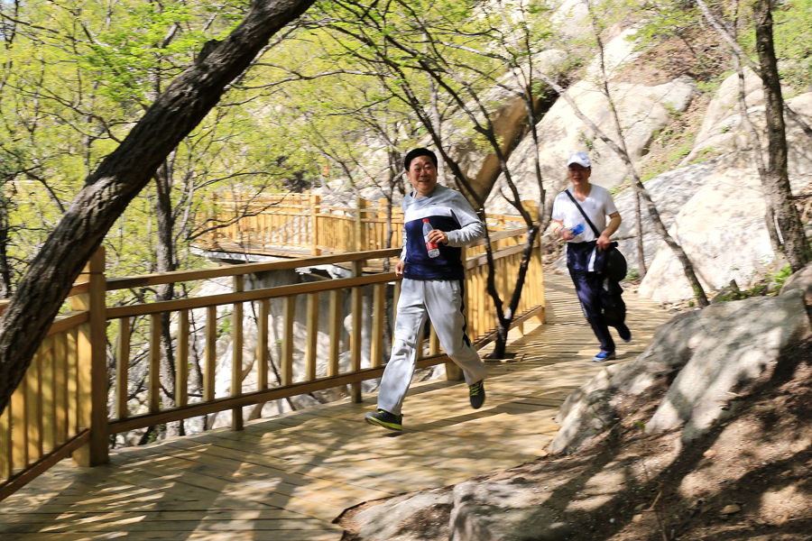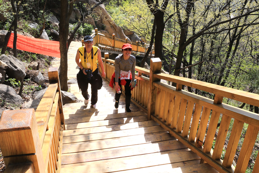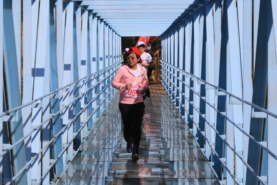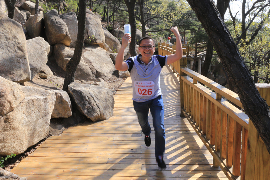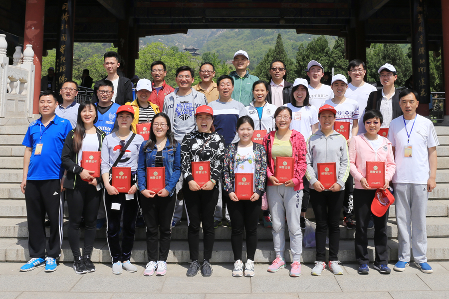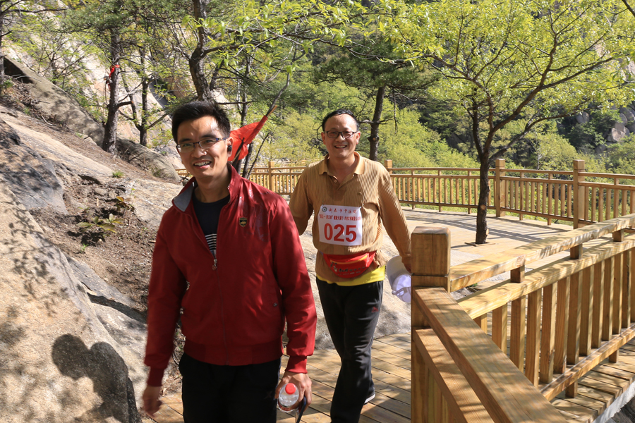 随着一声号令,登山比赛正式开始。近百名参赛者奋勇争先,沿着蜿蜒曲折的山路,你追我赶。跨过通天河吊桥,道路坡度逐渐加大,但是运动员们个个精神饱满,斗志昂扬。进入木栈道,离设置在玻璃栈桥西端的折返点越来越近了,大家的脸上仍然充满了轻松、惬意、微笑……。最终内镜室李迎吉、放射科赵义厚并列男子组第一名,用时1小时25分钟;妇科殷敏获女子组第一名,用时1小时35分钟;男女各前十名受到表彰奖励。(党办)
