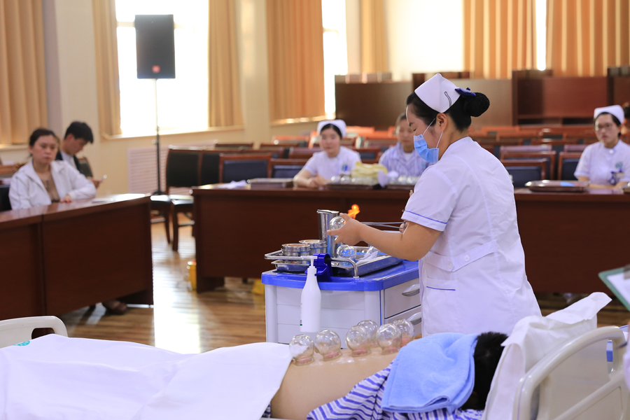 参加拔火罐法操作决赛的6名选手依次登场,个个一丝不苟,沉着应对,定位、闪罐、走罐、拔罐、观察、起罐,将优质的服务贯穿于每个操作环节,展现了规范的操作流程和娴熟的护理技能。评委现场对参赛选手操作前准备、操作过程表现、操作后用物处理等各个环节进行了客观、公正地评审,最终外二科李合娟获静脉留置针操作一等奖,急诊科张安娜获二等奖,妇科袁翠美获三等奖;产二科侯佳敏获拔火罐法操作一等奖,急诊科于相华获二等奖,外三科秦苗苗获三等奖;急诊科获团体一等奖,外二科、妇科获二等奖,外一科、产二科、外三科获三等奖。