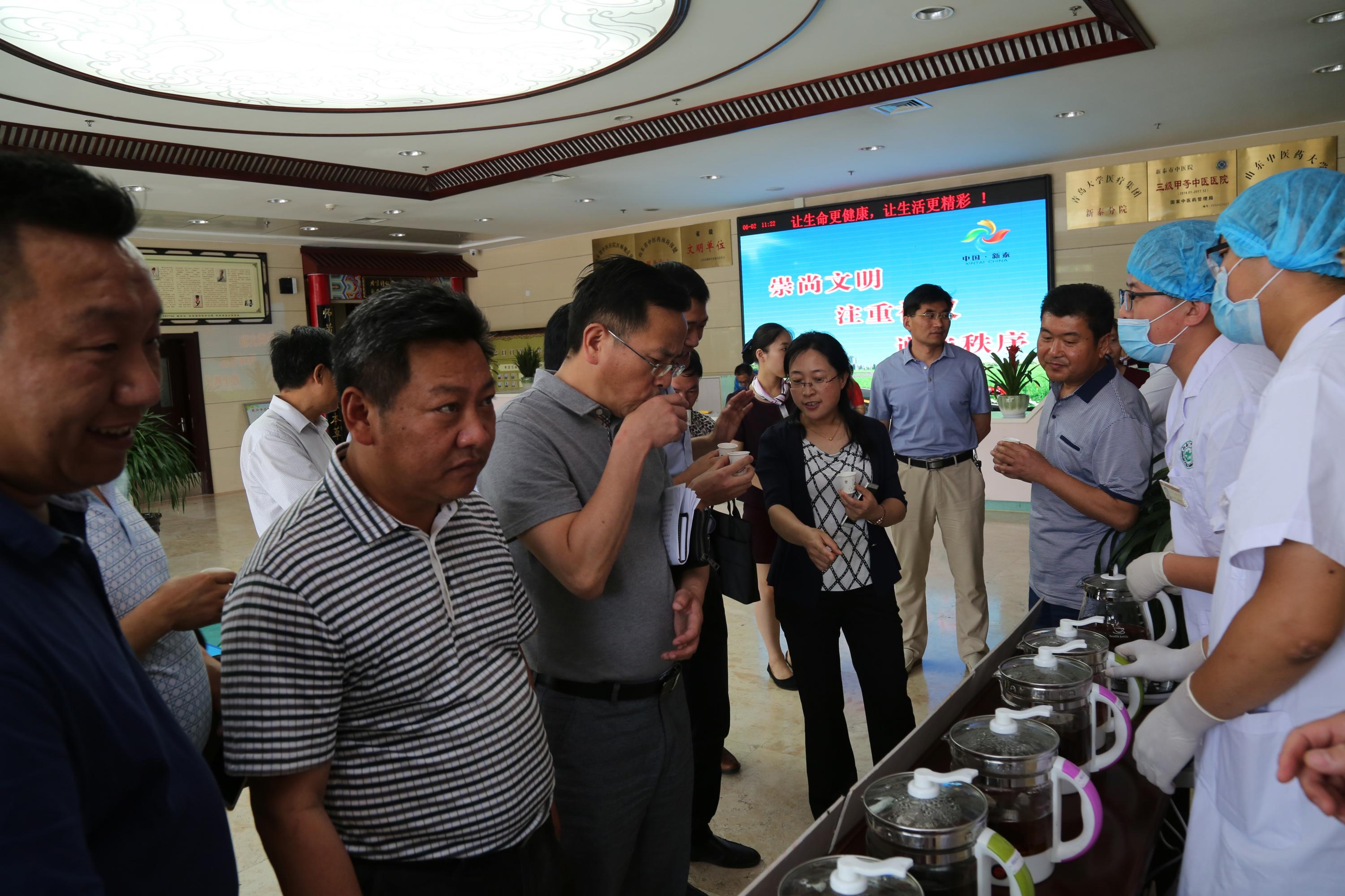 考察团先后在我院制剂室、煎药室、中药配方颗粒药房、骨伤科、针灸推拿科实地查看,在综合楼一楼大厅品尝医院中医专家研制的咽舒七宝饮、解酒护肝饮等多种中药代茶饮,参观过程中听取院长闫家平及相关科室负责人的介绍,对我院的综合实力和中医药服务能力给予高度评价。