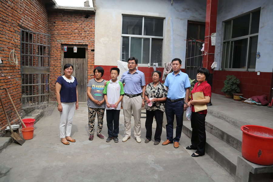 王超一行首先把我院职工为“春雷行动”中汶南镇的37名贫困儿童捐助11100元,递到汶南镇领导手中,然后到鲍庄村、德营村看望困难家庭,为他们送去爱心款。