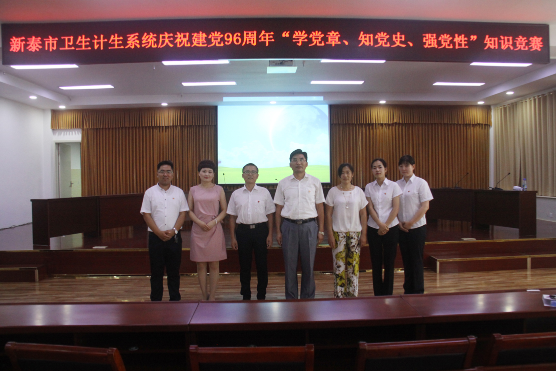 6月30日下午,由市卫生计生局和我院共同举办的卫生计生系统庆祝建党96周年“学党章、知党史、强党性”知识竞赛在我院1号会议室隆重举行。市直机关党工委书记周京涛、市卫生计生局局长王作东、市卫生计生局党委副书记史新芹、我院党委副书记王超出席活动并为获奖团队颁奖。市直各单位分工负责人、党务干部、部分党员群众代表到现场观看。
