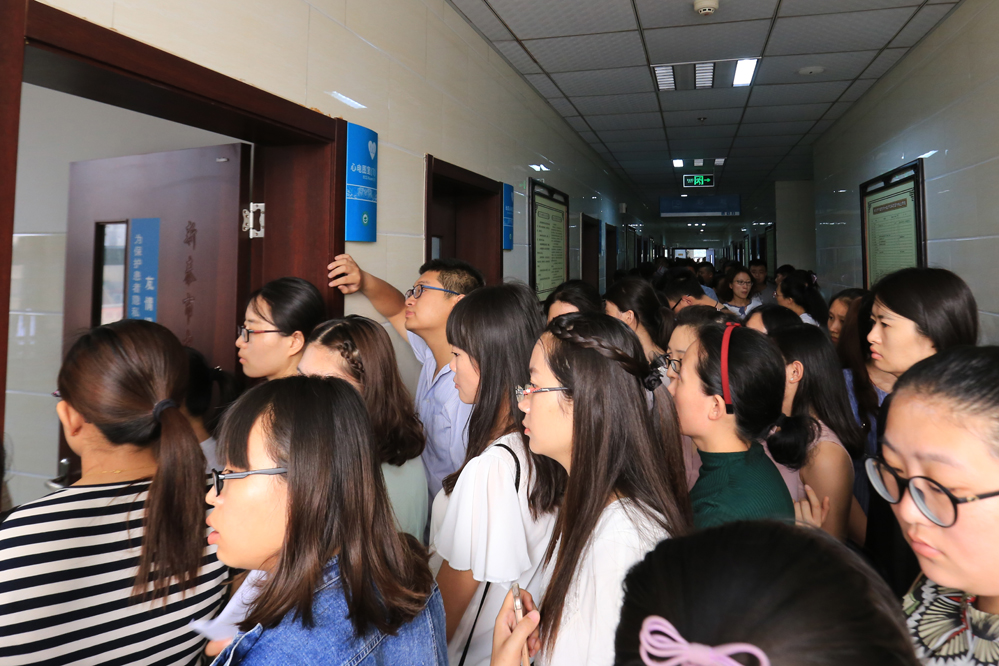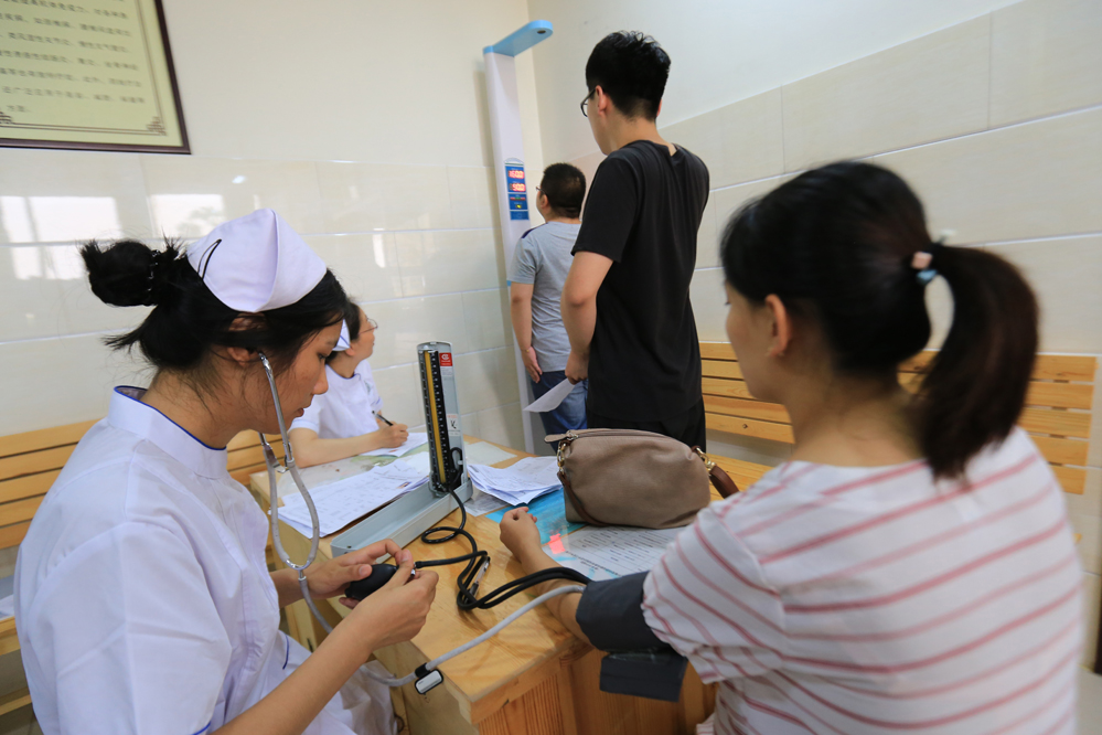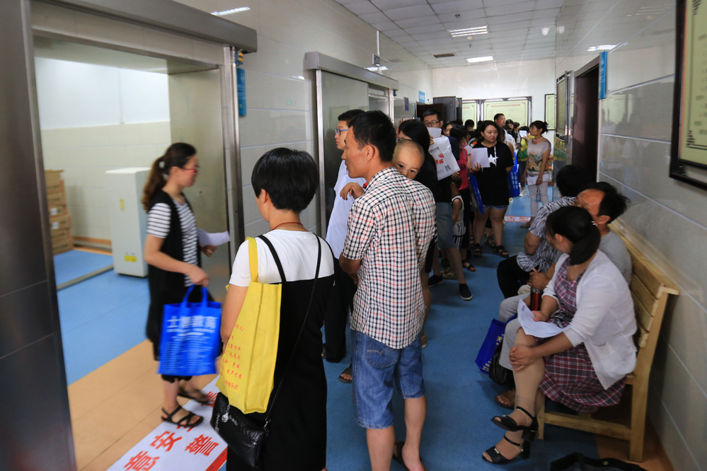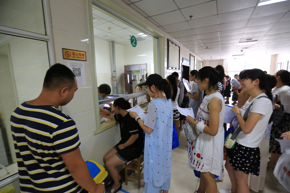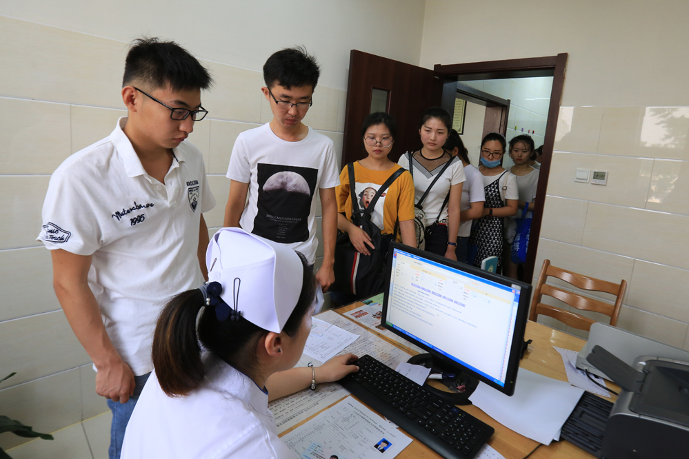 7月3日至5日,全市2017年教师资格体检工作在我院进行。我院高度重视,副院长李振爽亲自督导,医务科、护理部、财务科、查体中心抽调精兵强将,会同检验科、心电图室、放射科等,开展教师资格体检工作,3天累计检查600余人次。体检项目包括肝功、尿常规、心电图、胸透、身高、体重、视力、血压等。财务科为方便教师缴费,特地安排了临时收费处。检验科、心电图室、放射科等科室开通专门窗口,方便教师查体。全体医护人员每天从早上7点开始,加班加点工作,准确及时出具体检结果,及时把体检报告发放到体检的教师手中。 (查体中心)