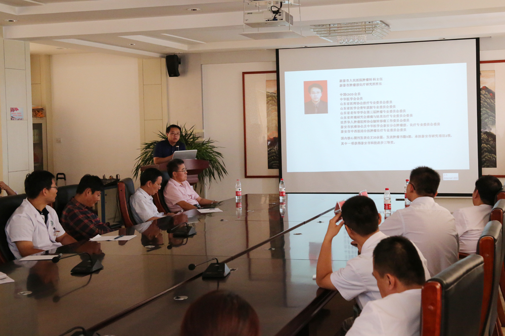 8月6日,我院特邀山东省肿瘤医院副院长李宝生教授在3号会议室进行《癌痛示范病房创建标准解读及评审工作计划》专题讲座,院领导闫家平、林永年、徐勤伟及临床、医技科室人员参加。李宝生教授还先后到我院放疗中心、内三科指导工作。新泰市人民医院肿瘤科主任马强应邀进行工作交流。(院办)