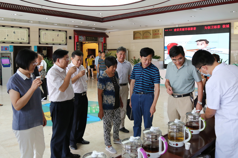 8月10日,泰安市养生保健康复学会志愿者、市政协原副主席张甲军,执行会长徐桂华带领学会办公室有关同志,就学会工作开展情况来我院进行调研和督导。新泰市人大主任马秀义、人大原副主任毕汝凤、副市长周典红、卫生计生局局长王作东陪同,我院院长闫家平、党委副书记王超参加。张主席一行先后到我院针灸推拿科等现场调研指导,品尝我院中药自制制剂代茶饮,并与相关领导座谈,听取工作汇报,对我市下一步的工作提出要求。