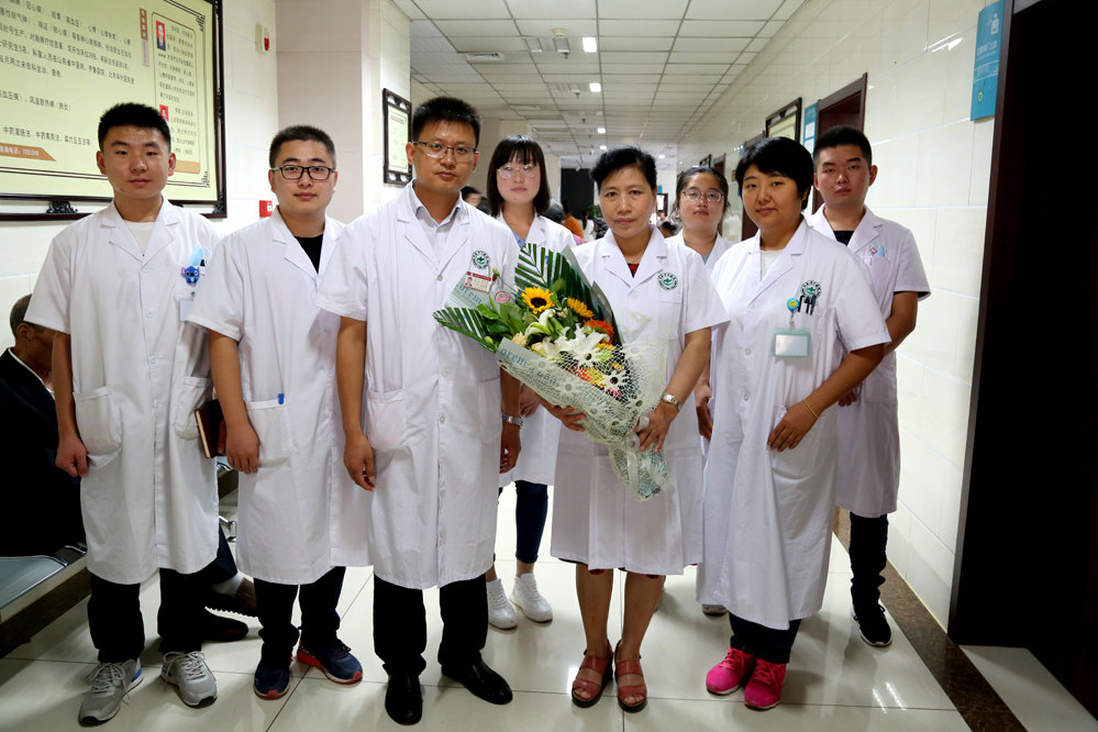 当天,李秀荣教授在我院肿瘤科出专家门诊,为很多慕名前来的患者坐诊查病,之后到肿瘤科病房进行医疗示范查房,对疑难病例进行分析,并对在场的多名医生讲解肿瘤疾病的相关知识及病人心理临床诊疗中需注意的问题,使在场医务人员受益匪浅。时值教师节来临之际,我院肿瘤科负责人、青年博士生李长洋向自己的恩师敬献鲜花,表示对老师的感谢与祝福。