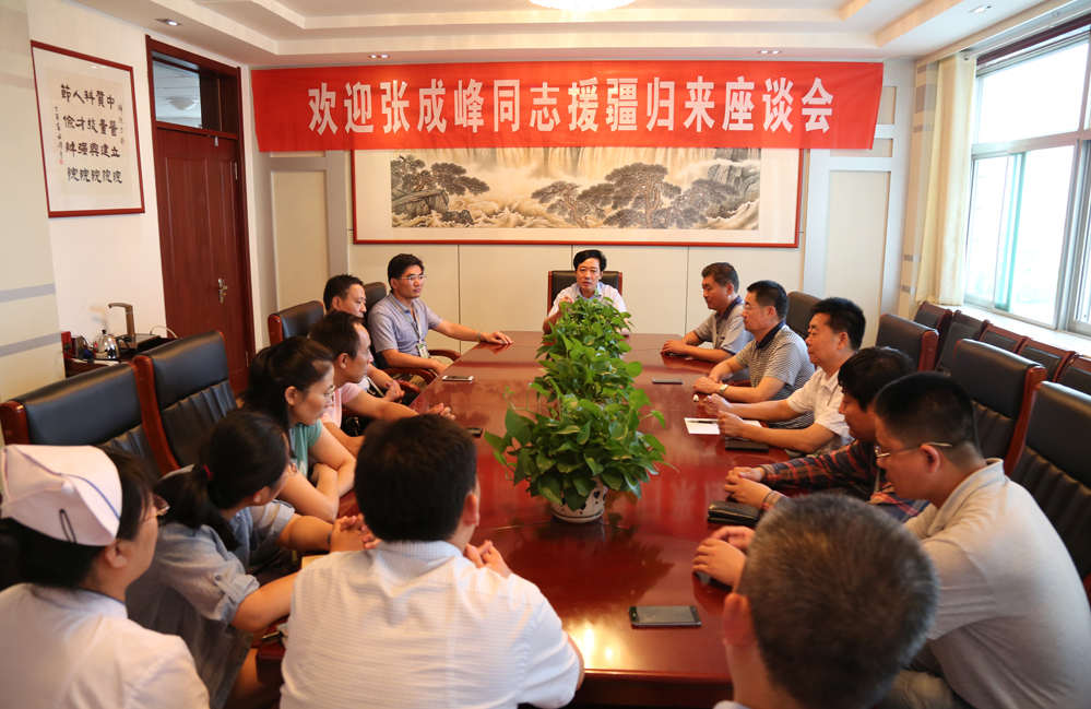 9月18日,我院召开欢迎张成峰援疆归来座谈会,院长闫家平主持,院领导李振爽、王超、林永年、徐勤伟、吴修才及相关科室人员参加。