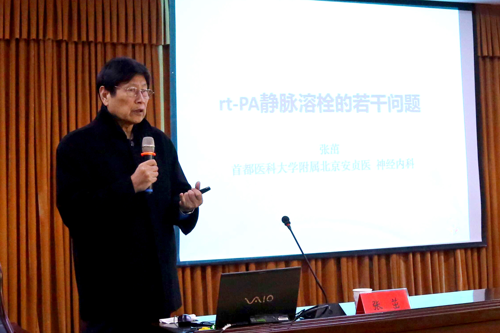张茁教授和朱秀宁副局长为中国卒中中心联盟新泰市中医医院卒中中心揭牌。揭牌仪式结束后,张茁教授和曹秉振主任分别作了《rt—PA静脉溶栓的若干问题》和《神经系统血管炎的诊治》的学术讲座。曹秉振主任到我院脑病科病房查房,为住院患者提供治疗服务。