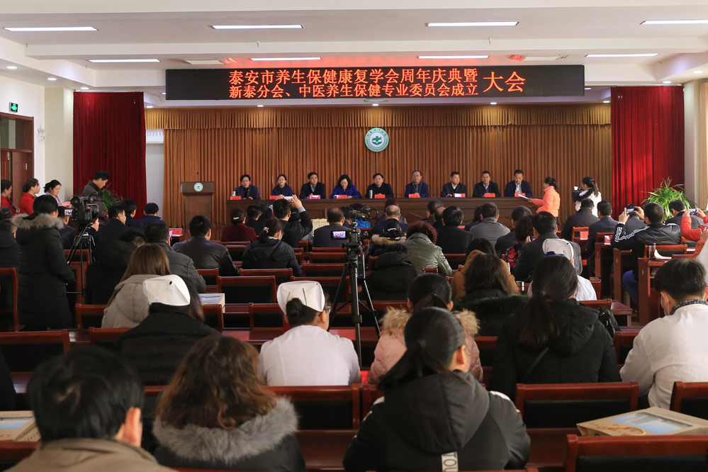12月9日,泰安市养生保健康复学会周年庆祝暨新泰分会、中医养生保健专业委员会成立大会在我院1号会议室召开,泰安市政协领导、原市政协副主席张甲军,泰山医学院博士生导师、原副院长、原泰安市政协副主席夏作理,泰安市科学技术协会党组书记张秀峰,泰安市养生保健康复学会会长、原泰安市卫生局副局长、泰安市红十字会常务副会长徐桂华,泰安市科学技术协会党组成员、副主席闫敏,泰安市养生保健康复学会秘书长、泰安技师学院工会主席张凯,新泰市人大常委会主任马秀义、副主任安原,新泰市人民政府副市长周典红,新泰市政协副主席、市卫生计生局副局长殷培文,聊城市人民医院副院长姜文,新泰市科学技术协会主席何新等出席会议。张甲军为新泰分会、中医养生保健专业委员会授牌,张秀峰宣读泰安市养生保健康复学会成为2017年泰安市“创新和服务能力提升工程综合示范学会”的表彰决定,张凯宣读泰安市养生保健康复学会新泰市分会、中医养生保健专业委员会成立的批复,并宣布新泰分会、中医养生保健专业委员会领导班子成员的任命决定,徐桂华、周典红分别讲话,新当选的新泰分会和中医养生保健专业委员会负责人分别作表态发言。泰安市养生保健康复学会部分领导,泰山区、岱岳区、泰安高新区、肥城市、东平县、宁阳县各分会、专业委员会部分领导及新泰分会、中医养生保健专业委员会全体会员共200余人参加会议。会议由我院院长闫家平主持。
