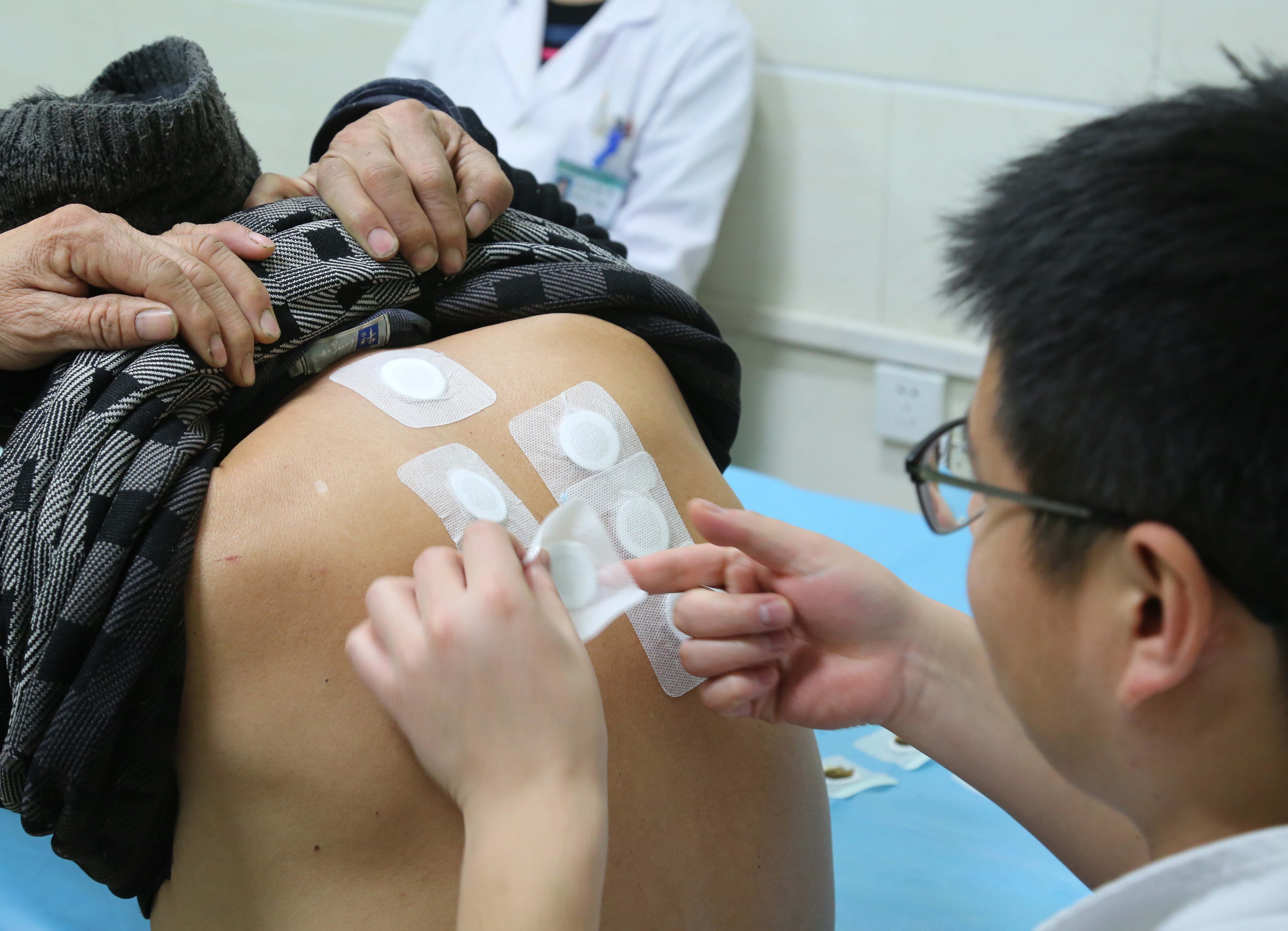 随着天气逐渐转冷,许多季节性疾病极易复发,尤其是因为气候寒冷引起的“痛”“咳”“喘”等慢性疾病。据新泰市中医医院主任中医师李振爽介绍,冬主收藏,冬至后天气寒冷,人体阳气内敛,气血运行缓慢。此时采用具有辛温助阳的中药贴敷在人体特定穴位上,通过药物、俞穴及经络的作用,疏经散寒、温肺逐痰、健脾补肾、调节脏腑功能,调动机体免疫功能,达到治疗和预防疾病的目的。旨在使“正气存内,邪不可干”,从而达到“未病先防”。68岁的李大娘膝关节炎多年,特别是寒冷的冬季更为严重,上下楼梯膝关节疼痛难忍,这些年通过三九贴敷得到了很好的缓解。李先生带着5岁的女儿来贴“三九贴”,他说这是第二年给孩子贴,夏天的“三伏贴”也贴了,感觉孩子抵抗力增强了,一年多没有感冒了。