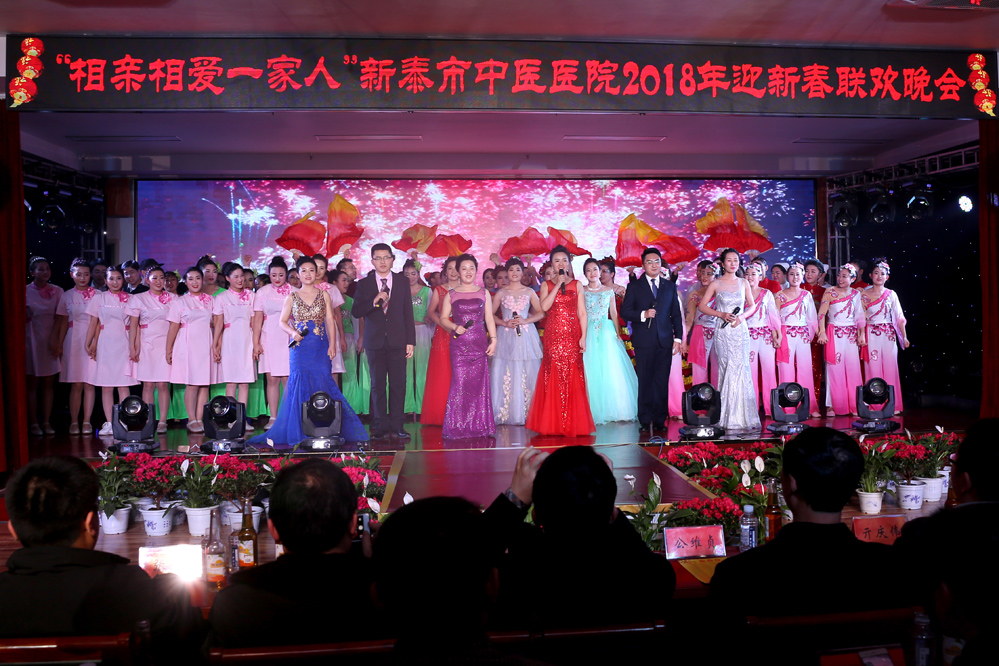 2月7日晚6时整,我院“相亲相爱一家人”2018年迎新春联欢晚会在一支《张灯结彩》的舞蹈中盛大开幕。市总工会、市编办、市审改办、市卫计局、市医保处、市妇保计生中心、汶南镇、东城社区等有关单位的领导应邀出席。我院理事长、院长闫家平携两委班子成员登台给大家拜年。闫家平表示,2017年,新泰市中医医院人,攻坚克难、拼搏实干、创新争先、成绩斐然。2018年,新泰市中医医院人,意志更坚、奋力登攀、跨越发展、再谱新篇。值此新春佳节来临之际,衷心祝愿大家在新的一年里,团团圆圆,平平安安、快乐康健、幸福美满!