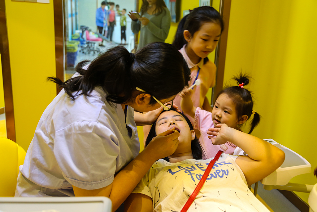 9月20日是全国爱牙日,我院口腔科举办系列活动之亲子刷牙比赛。孩子们由爸爸或妈妈陪同,在我院口腔科医生的指导下,高兴的参加了本次比赛。口腔科医生义务为小朋友查治牙病,讲解口腔卫生保健常识及正确的刷牙方法。本次活动共有20多个家庭参加,按照严格的比赛流程和评比标准,最终评出了“爱牙小卫士”,并给予了表彰奖励。通过参加活动,孩子及家长们学会了刷牙方法,增强了刷牙兴趣,提升了口腔健康意识。(党办 展光保)