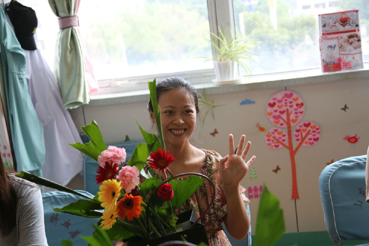 7月22日,我院孕妇学校举办准妈妈插花秀,免费提供鲜花、花篮及相关用品,10余位准妈妈参加。(产科)