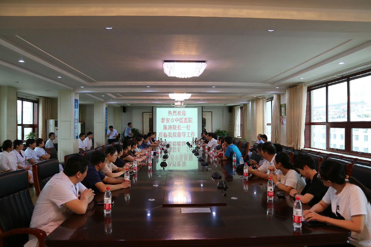 8月7日,泰安市中医医院院长陈涛一行20余人来我院参观交流,我院院长闫家平、副院长李振爽、党委副书记王超、副院长吴修才、党委委员孙晶及有关科室负责人陪同。陈涛一行首先观看了我院工作宣传片,听取了有关汇报,之后分组到相关科室参观交流。(党办)