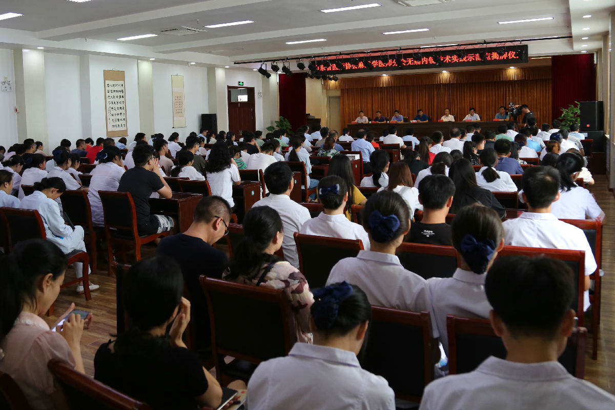 8月6日下午15:00,山东省医师协会麻醉学医师分会无痛内镜技术实践示范点揭牌仪式在我院举行。山东省医师协会麻醉医师分会会长、山东中医药大学附属医院麻醉科主任苏帆,市政协副主席、市卫生健康局副局长殷培文,泰安市中心医院麻醉科主任、泰安麻醉学会主任委员李胜德,我院院长闫家平等在家的院两委成员出席揭牌仪式,我院中层干部、相关科室医护人员150余人参加仪式。我院副院长林永年主持会议。