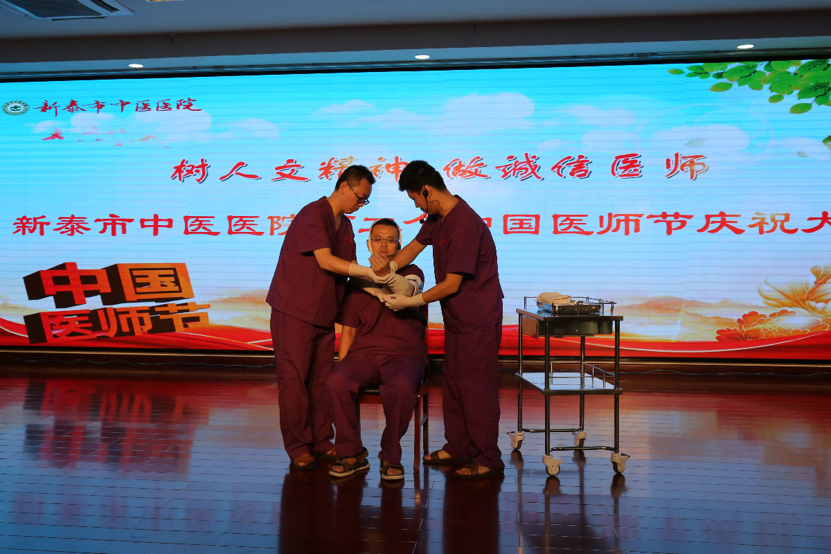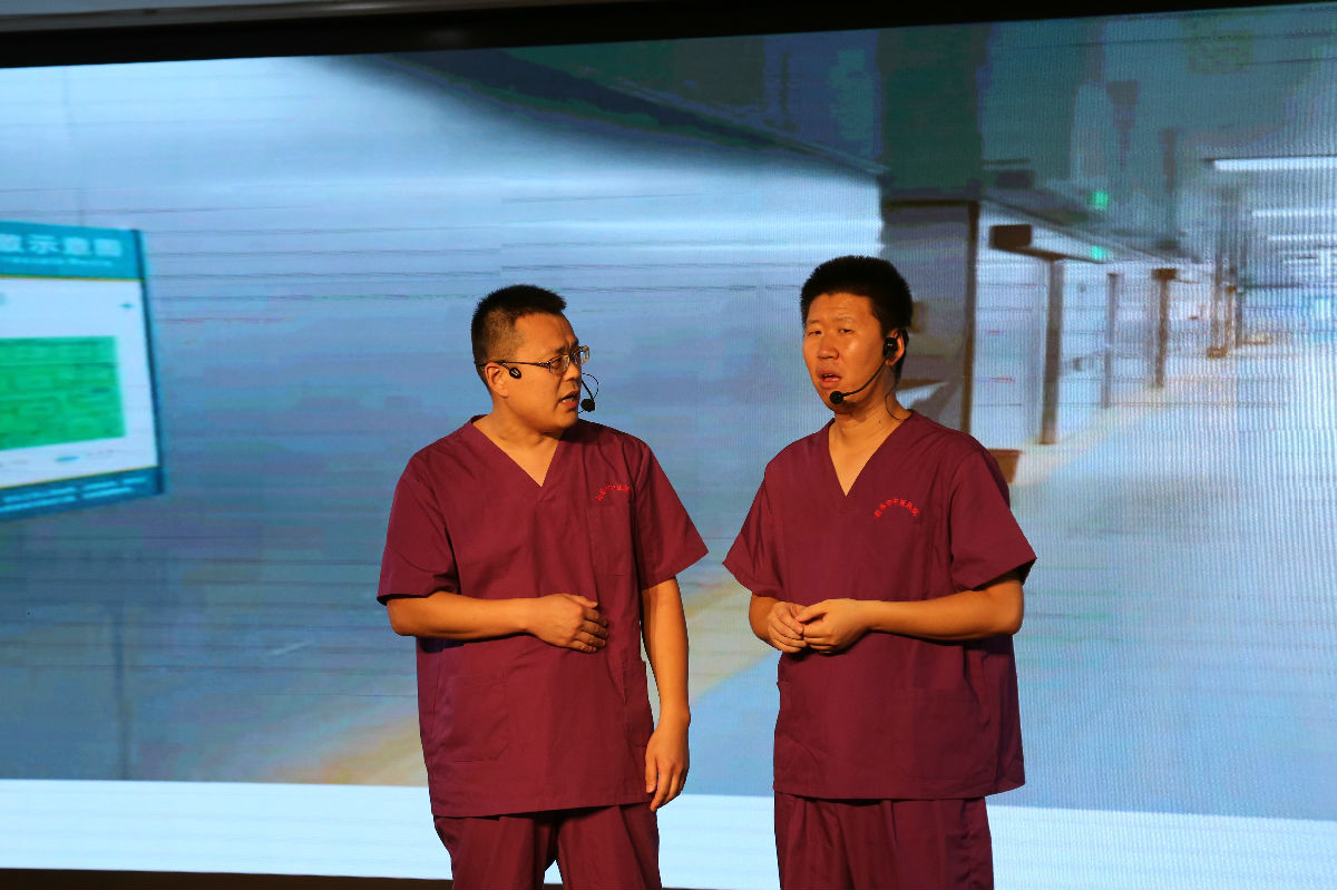 与会人员观看了医务科组织的“双人配合外伤止血、包扎与固定急救技能操作”业务技能展示,以及医院感染管理科组织的外三科孙彬、毛志昊表演的相声《我被扎了》。