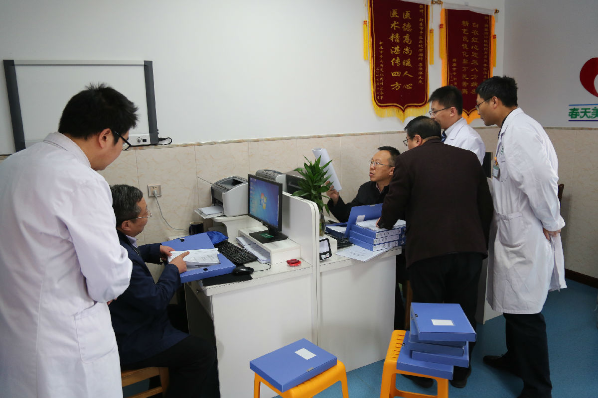 11月26日,山东省肿瘤质控专家组成员、山东第一医科大学第一附属医院放疗科主任张建东,泰安市肿瘤质控专家组成员、泰安市肿瘤医院副院长李瑞卿等专家组一行7人,来我院进行我院癌症规范化诊疗病房建设评审及2019年年度泰安市肿瘤质控检查。我院院长闫家平、副院长李振爽陪同。专家们首先听取了我院癌症规范化诊疗病房建设情况汇报,之后深入相关科室现场检查评审。