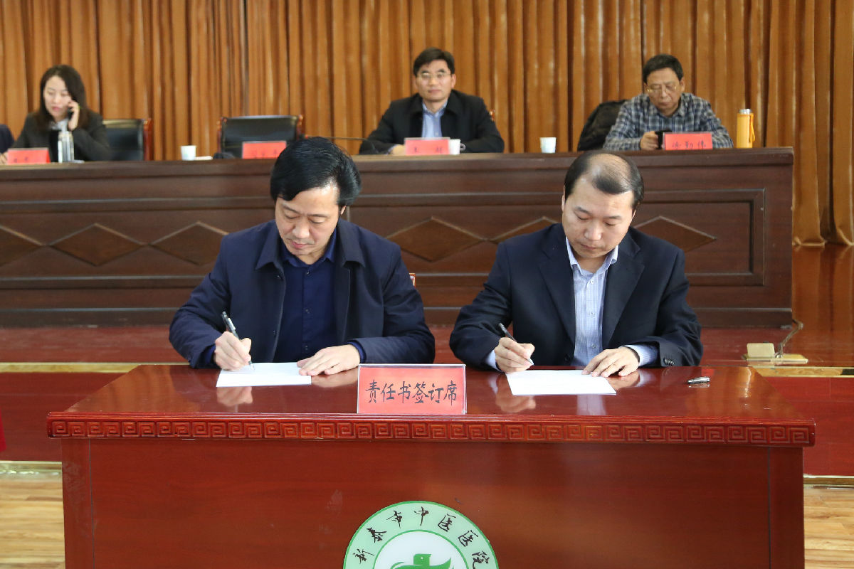 在欢快的乐曲声和热烈的掌声中,大会对在过去一年中为医院发展积极奉献、成绩突出的先进集体和个人进行了表扬鼓励。局领导和院领导为获奖者颁发奖牌。5个科室代表分别作表态发言,院长闫家平与相关科室负责人签订2020年度综合目标责任书。