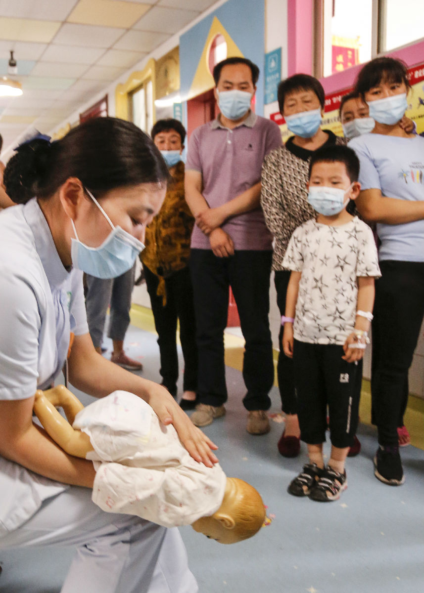 随后,杨晓向家长们指导示范了海姆立克急救法,家长们认真学习,并提出疑问,在现场进行了很好的互动。