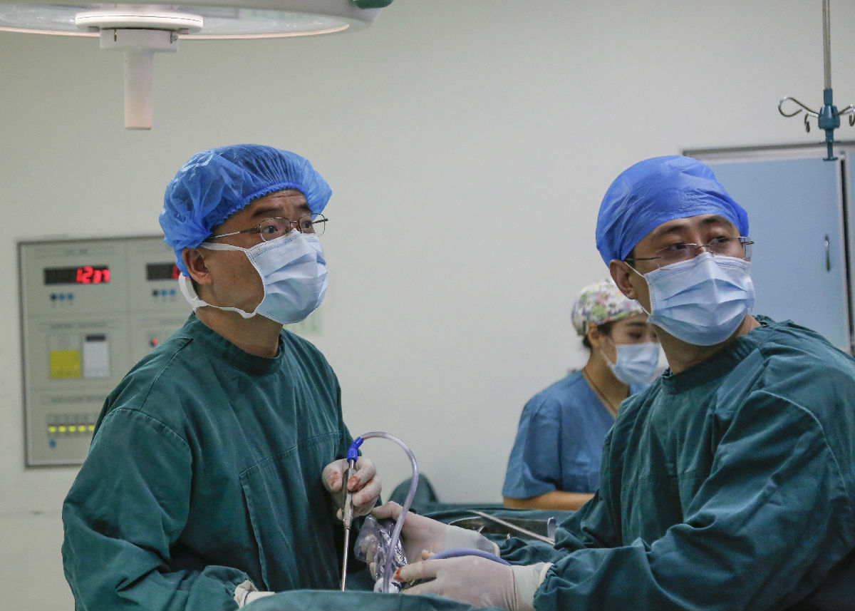 外二科由胸外科、泌尿外科、小儿外科、微创肝胆专业组成,通过9年的发展,各个专业微创手术齐头并进,共同发展,已向国内先进水平靠拢。泌尿系结石在我们地区的发病率较高,很多病人饱受肾绞痛之苦,也有一些无症状患者,这种情况因为无症状不能引起病人的重视反而深受其害,等到积水严重造成皮囊肾就无法保留患肾了。泌尿系结石治疗手段很多,多数小结石经过体外冲击波碎石就能痊愈,极大的减轻了病人的创伤,也减少了住院花费。但是像王大叔这样的结石通过体外碎石是不可行的,结石较大并位置比较高,开放手术需要近20cm的切口,手术创伤大,恢复慢。我院熟练开展的经皮肾镜取石技术以其创伤小,恢复快却能完美的解决结石问题得到患者赞誉。泌尿外科专业团队经过多年的临床经验,已经做到十分熟练的完成这项难度比较高的手术。