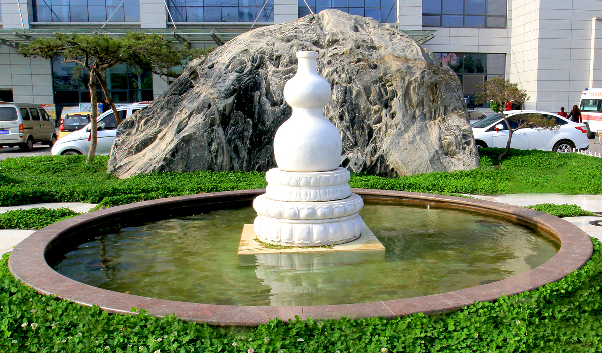 清晨,走在上班的路上,路过中医院大门,常常是一只白色的大葫芦率先映入眼帘,那只葫芦圆圆的,如白玉一般,静静地立在那里,似乎在慈祥地注视着大路上的芸芸众生,上面喷洒出来的清澈水流里,蕴含着一份柔柔的大爱之意,把一幅祥和之气撒播在周围,令人一看就充满了沁润心间的祥瑞与心怡之感。