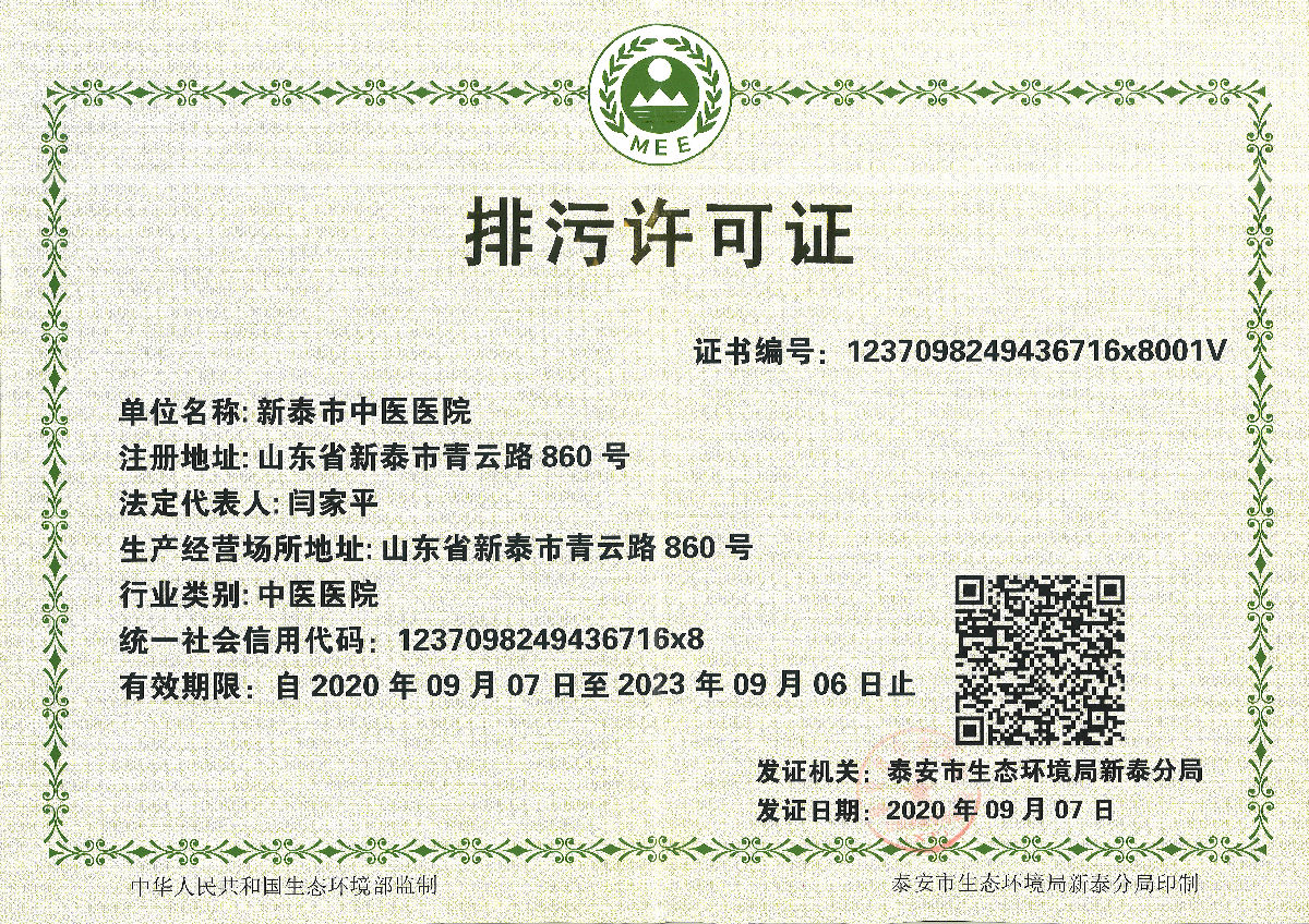 新泰市中医医院环境信息公示