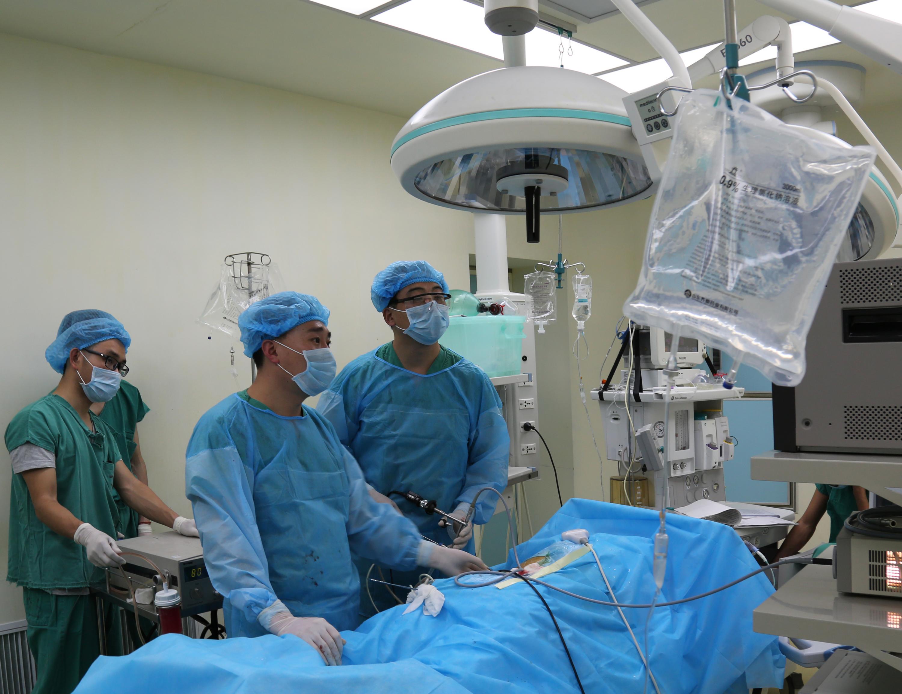 经皮肾镜取石术是保肾取石技术的一种,经皮肾镜微创取石术又称为“打洞取石”,是通过经皮肾镜在在腰背部开一个1厘米的皮肤切口,用一根纤细的穿刺针直接从切口进入肾脏,置入肾镜,使用超声弹道碎石机或钬激光击碎结石并取石。经皮肾镜技术是泌尿外科手术的一个重要部分,在治疗上肾结石及输尿管上端结石方面,与输尿管镜技术及体外冲击波碎石共同成为现代主要的治疗泌尿系结石的方法,已彻底改变了传统开放手术的外科治疗方式。瑞士EMS碎石清石系统能针对体积大、硬度高的结石,超声碎石系统能明显提高碎石、清石效率,缩短碎石时间,降低残石率;对于肾脏积脓、感染、年龄偏大、体质较差的患者来说,整个碎石过程不需要取石钳或者套石篮等器械操作,不需要反复进出输尿管肾镜进行冲洗,从而减少了手术并发症的几率。超声负压吸附清除影响视野的血块和絮状物,使视野能更加清晰;对于隐藏在肾盏内的小结石,可以通过超声吸附功能吸出肾盏进行处理,提高结石清除率。