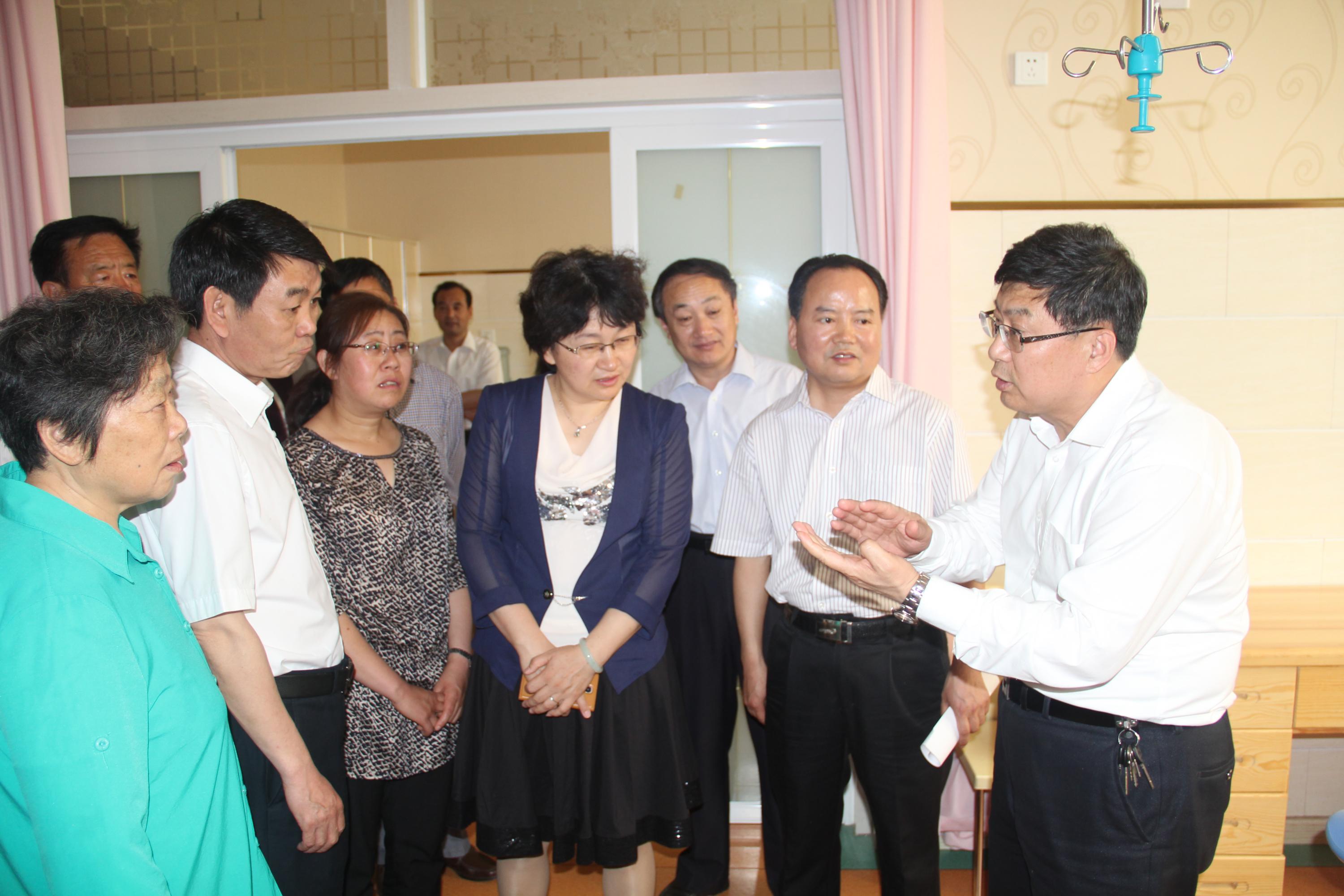 5月22日,全国人大代表、泰安市政协副主席、泰安市中心医院院长刘君一行来我院调研新农合、医保情况,市人大常委会主任张宏等陪同。