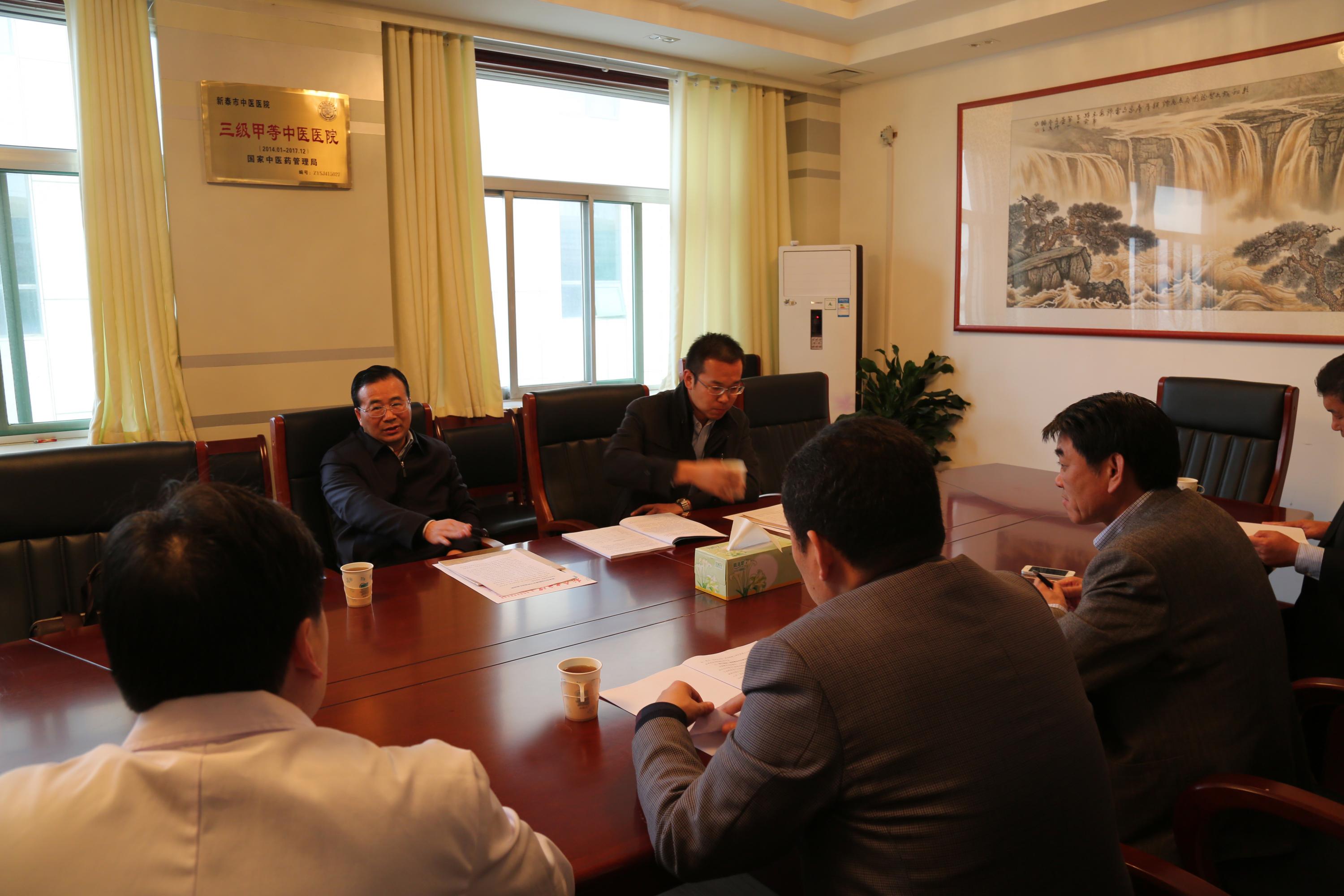 11月21日,国家中医药管理局医政司基层指导处吴凯处长、程强科长莅临我院调研中医重点专科建设工作,市卫生局副局长韩富强、我院党总支书记谭庆坤、副院长李振爽陪同调研。