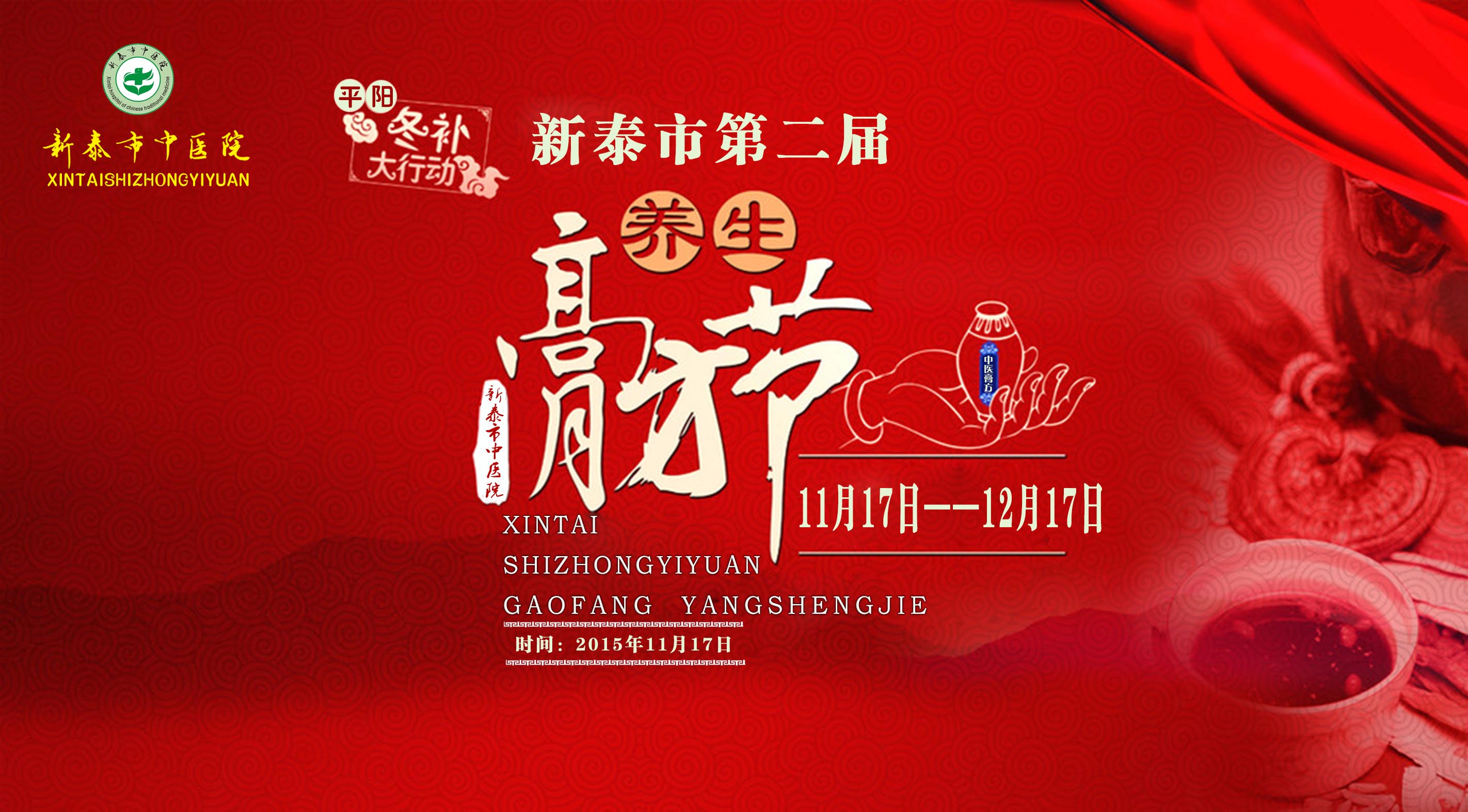 新泰市第二届膏方养生节暨大型义诊活动定于2015年11月17日在新泰市中医院举办启动仪式,为让广大市民充分了解膏方、感受膏方、体验膏方,活动时间将持续一个月(11月17日—12月17日),活动详情如下: