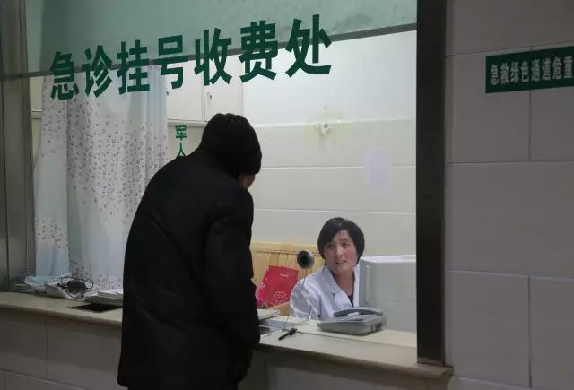 晚上7点14分,急诊挂号窗口,工作人员在回答病患的询问。