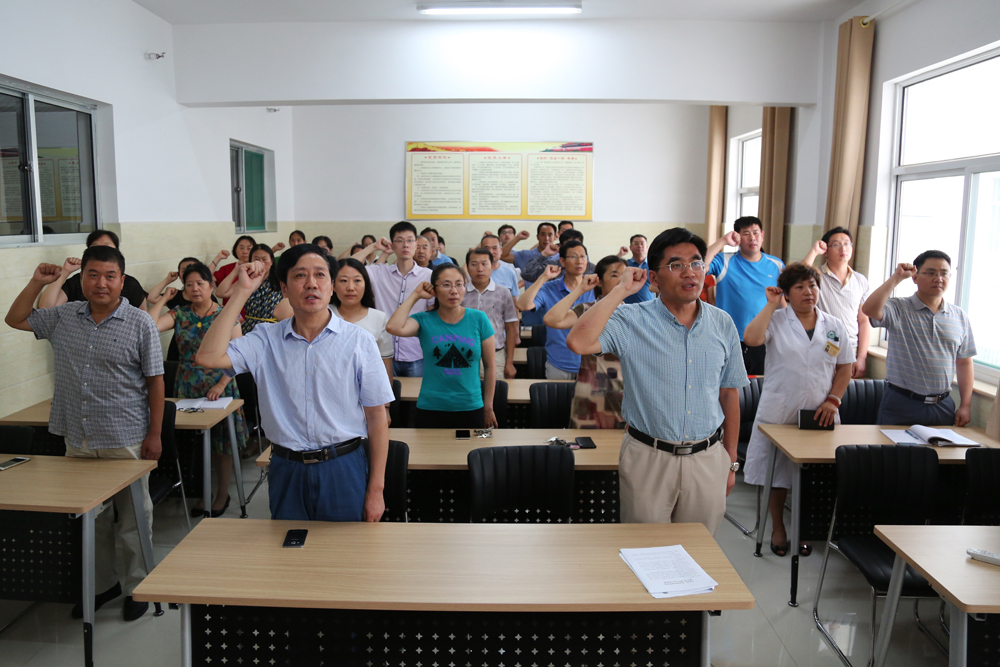 7月29日,我院组织党员重温入党誓词,深入学习习近平总书记在庆祝建党95周年纪念大会上的重要讲话,扎实推进“两学一做”学习教育工作。院长闫家平、副院长李振爽、党总支副书记王超参加第三党支部活动。