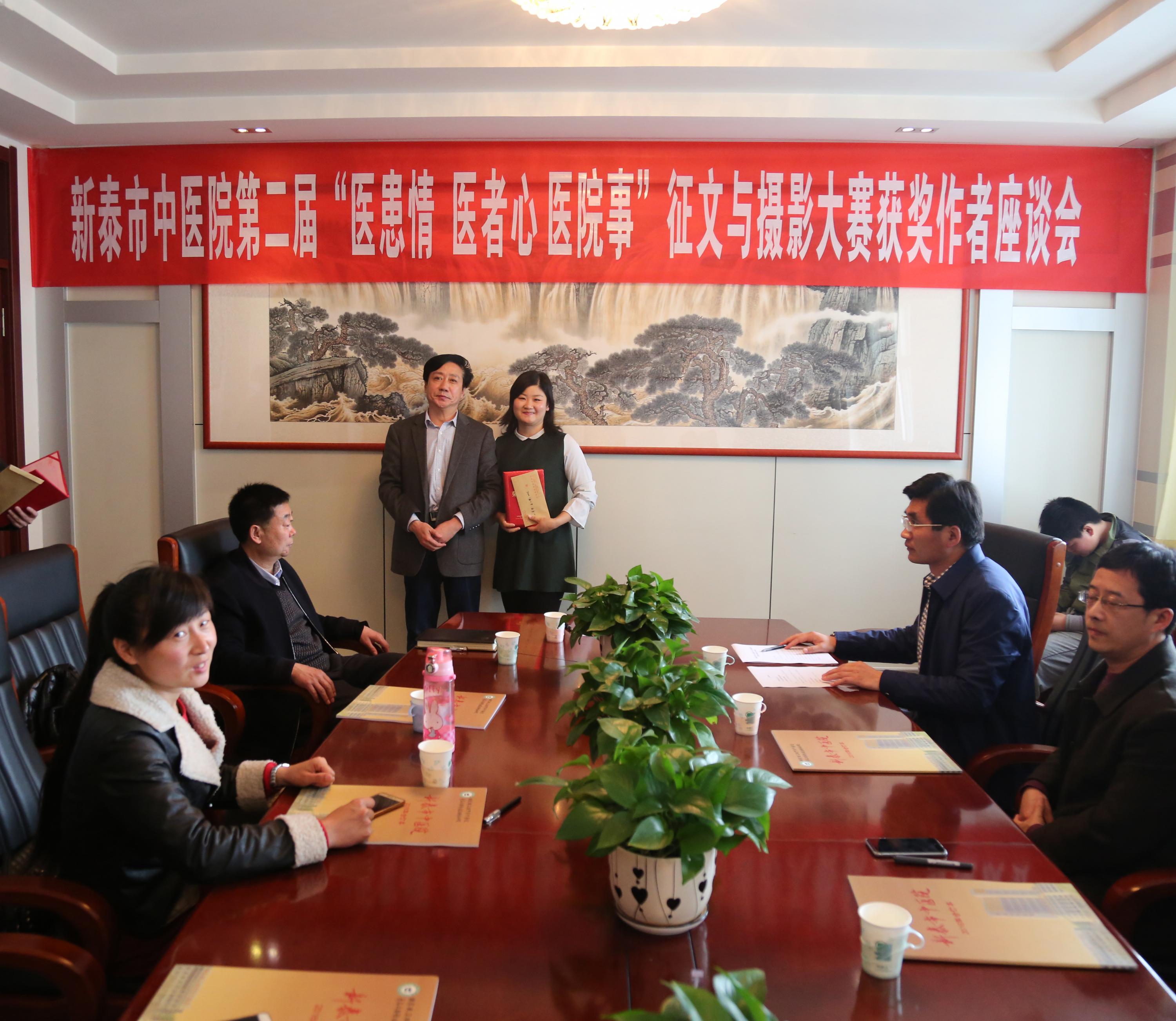 4月8日,我院召开第二届“医患情 医者心 医院事”征文与摄影大赛颁奖座谈会,院长闫家平、党委副书记王超、副院长吴修才、部分获奖作者、医院部分科室负责人参加。