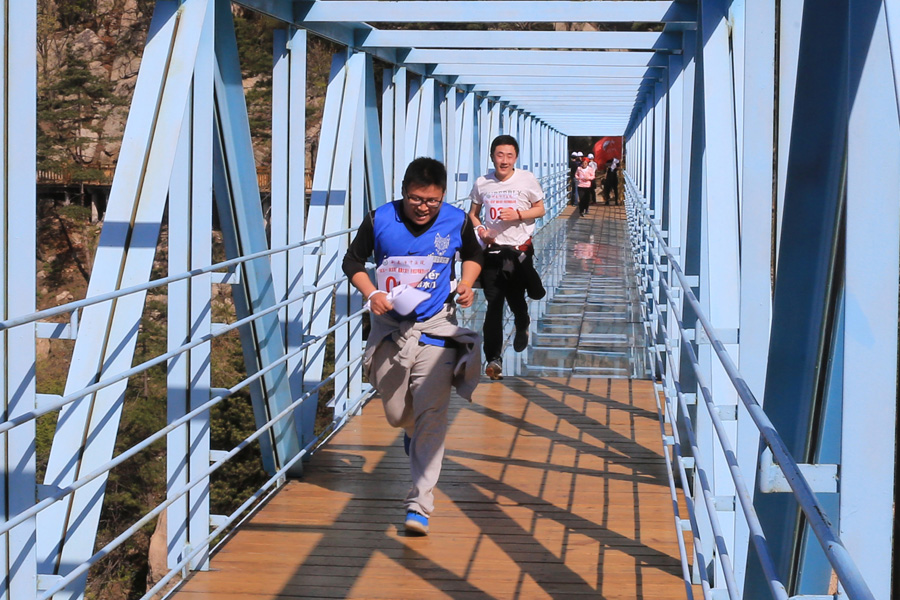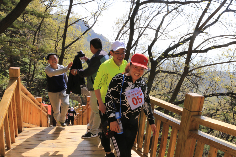 随着一声号令,登山比赛正式开始。近百名参赛者奋勇争先,沿着蜿蜒曲折的山路,你追我赶。跨过通天河吊桥,道路坡度逐渐加大,但是运动员们个个精神饱满,斗志昂扬。进入木栈道,离设置在玻璃栈桥西端的折返点越来越近了,大家的脸上仍然充满了轻松、惬意、微笑……。最终内镜室李迎吉、放射科赵义厚并列男子组第一名,用时1小时25分钟;妇科殷敏获女子组第一名,用时1小时35分钟;男女各前十名受到表彰奖励。(党办)