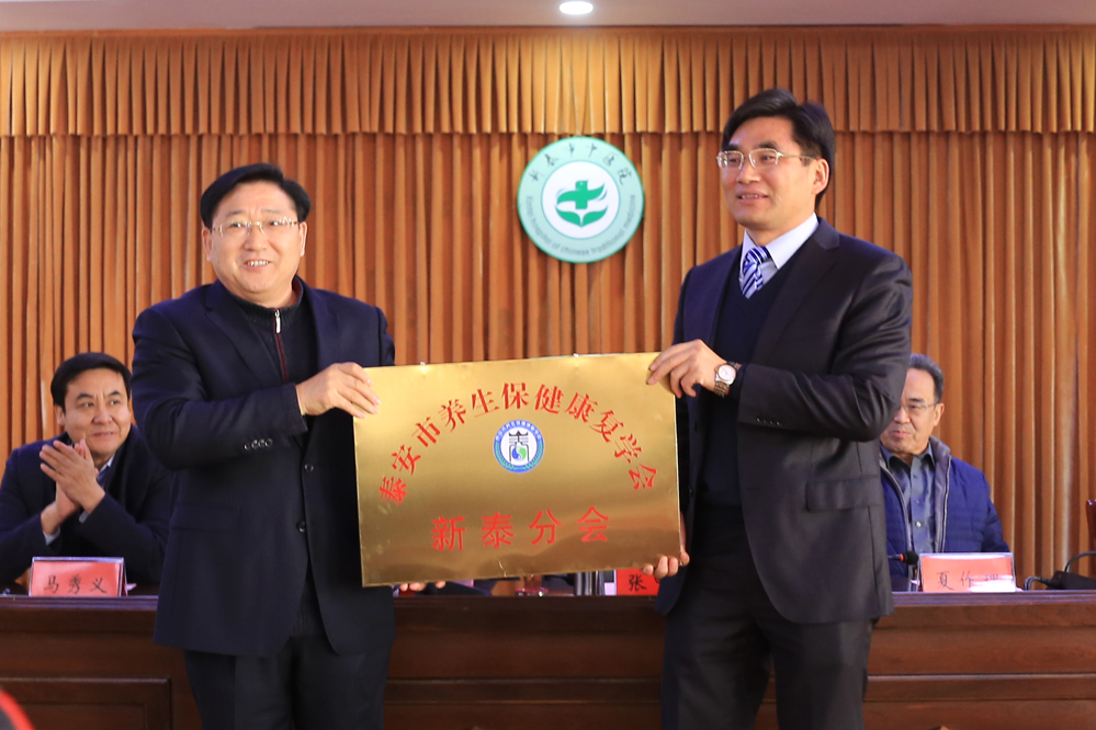 12月9日,泰安市养生保健康复学会周年庆祝暨新泰分会、中医养生保健专业委员会成立大会在我院1号会议室召开,泰安市政协领导、原市政协副主席张甲军,泰山医学院博士生导师、原副院长、原泰安市政协副主席夏作理,泰安市科学技术协会党组书记张秀峰,泰安市养生保健康复学会会长、原泰安市卫生局副局长、泰安市红十字会常务副会长徐桂华,泰安市科学技术协会党组成员、副主席闫敏,泰安市养生保健康复学会秘书长、泰安技师学院工会主席张凯,新泰市人大常委会主任马秀义、副主任安原,新泰市人民政府副市长周典红,新泰市政协副主席、市卫生计生局副局长殷培文,聊城市人民医院副院长姜文,新泰市科学技术协会主席何新等出席会议。张甲军为新泰分会、中医养生保健专业委员会授牌,张秀峰宣读泰安市养生保健康复学会成为2017年泰安市“创新和服务能力提升工程综合示范学会”的表彰决定,张凯宣读泰安市养生保健康复学会新泰市分会、中医养生保健专业委员会成立的批复,并宣布新泰分会、中医养生保健专业委员会领导班子成员的任命决定,徐桂华、周典红分别讲话,新当选的新泰分会和中医养生保健专业委员会负责人分别作表态发言。泰安市养生保健康复学会部分领导,泰山区、岱岳区、泰安高新区、肥城市、东平县、宁阳县各分会、专业委员会部分领导及新泰分会、中医养生保健专业委员会全体会员共200余人参加会议。会议由我院院长闫家平主持。