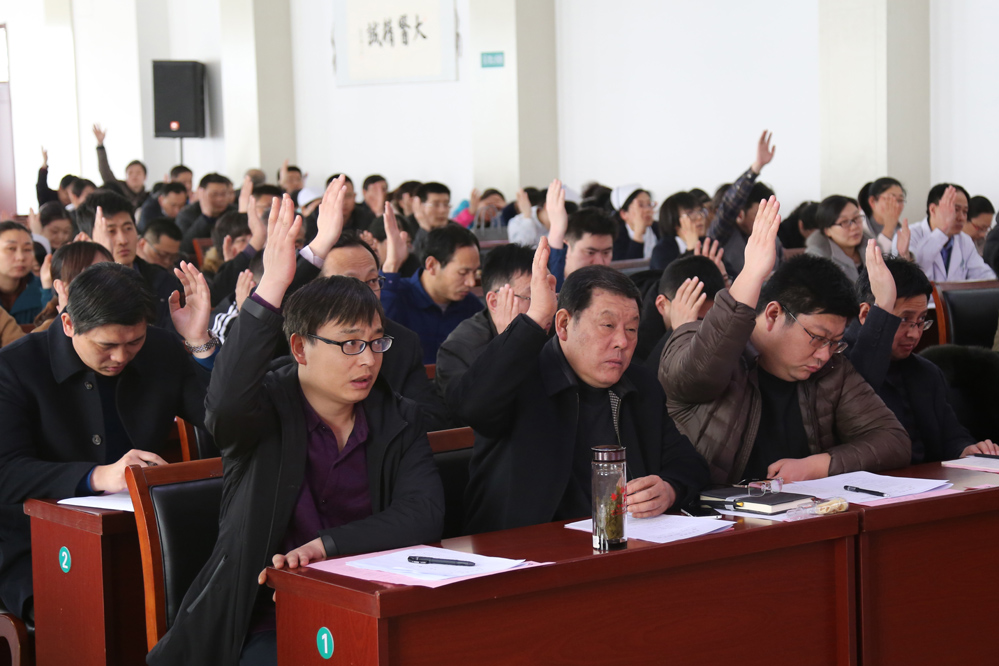 闫家平作《奋斗新时代、奋进新征程,全力打造名副其实的三级甲等中医医院》的工作报告。报告总揽全局,求真务实,总结工作实事求是,振奋人心;安排部署高瞻远瞩,催人奋进;任务目标清晰明确,措施有力。
