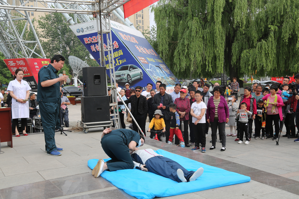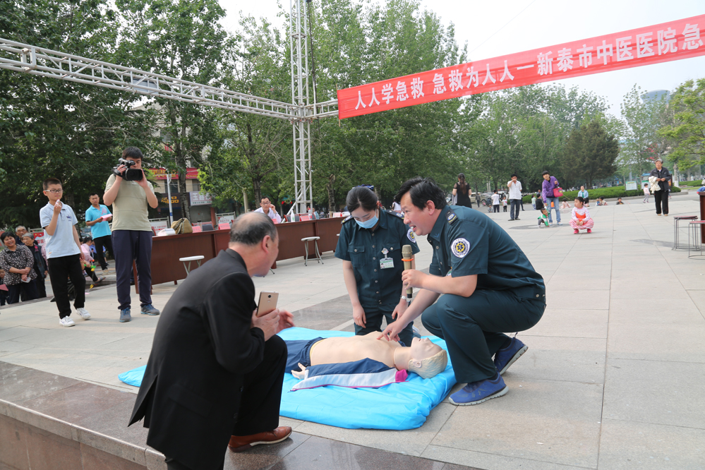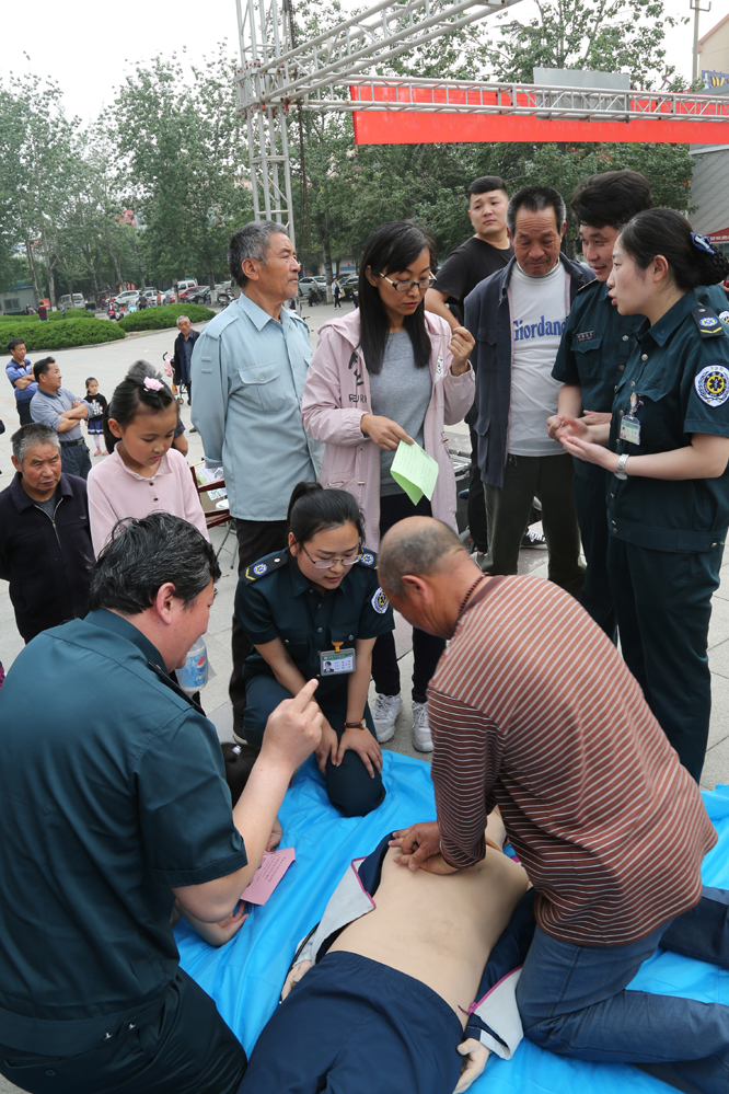 现场吸引了大批群众观看,气氛热烈。“捏住鼻孔,用口包住患者的嘴,吹气,吹气的时候要看我们的胸廓是不是起伏,吹两次气,再按30次,频率是每分钟100到120次。”随着急诊科主任李明的介绍,医护人员现场进行心肺复苏急救示范操作。医务工作者还对如何判断病人心跳呼吸停止、心肺复苏的指征、操作步骤及技巧、救助过程中的注意事项、复苏成功的指征等进行了详细讲解。现场不但有讲解演示,还邀请市民进行实地操作,针对操作中遇到的问题,进行耐心仔细解答。大家纷纷表示,这种现场急救培训方式非常好,懂一点急救常识,关键时候可以救活一个人的生命。