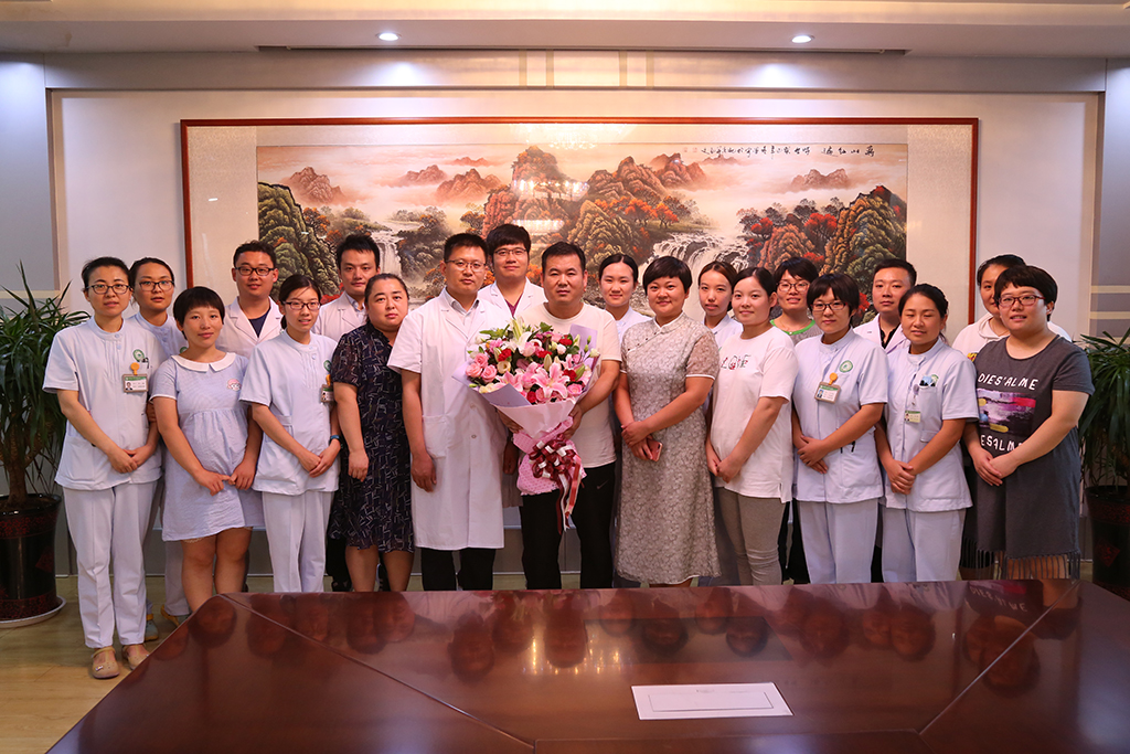会议结束,参加会议的院领导班子和内三科医护人员分别与田志亮合影留念。